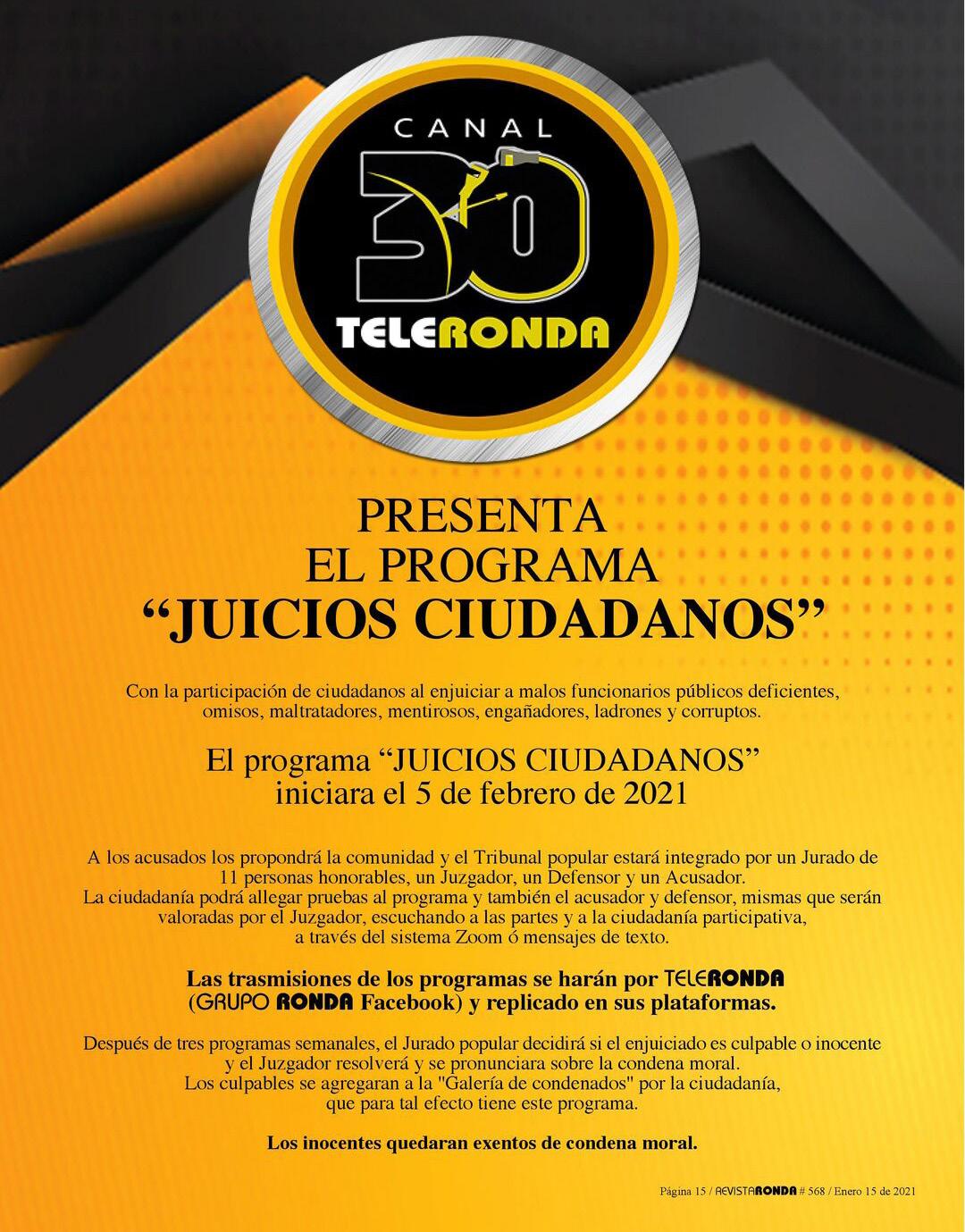 Teleronda y Revista Ronda transmite y publica contenido interesante como: temas sociales, políticos; así como Óptica: Comentarios mas allá de lo evidente, culturales y deportivos. Además hay diversas dinámicas que te hacen ganador de diferentes premios.