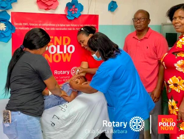 En la República Dominicana Rotary International contribuyó con una donación de US$ 300 mil, logrando el Programa Ampliado de Inmunización desarrollar acciones que contribuyeron al mejoramiento de las coberturas en 2019; se destaca la ejecución de la jornada nacional de vacunación contra la poliomielitis, en donde se logró vacunar a 507,997 niños y niñas en las edades objeto de intervención (3 a 35 meses) lo que represento el 96.7% de la meta. Dicha cobertura fue contrastada con la realización de 792 monitoreos rápidos de