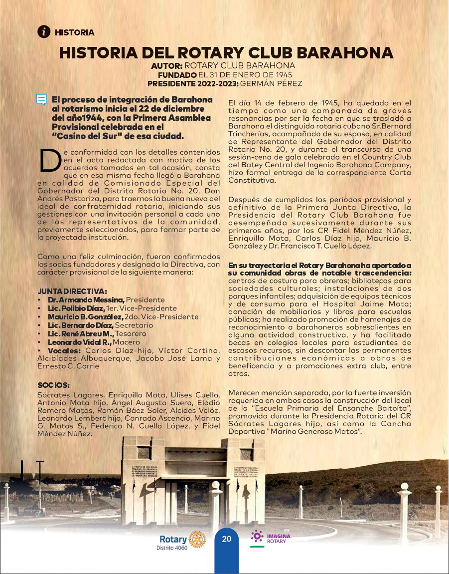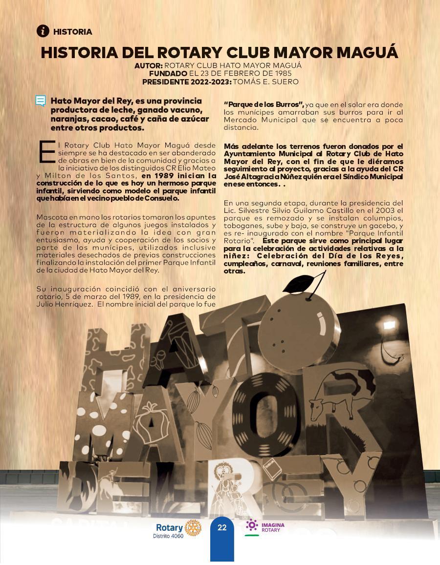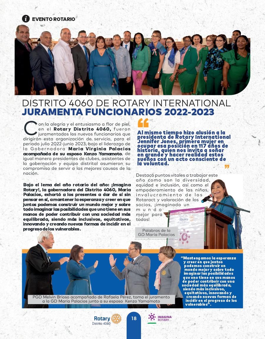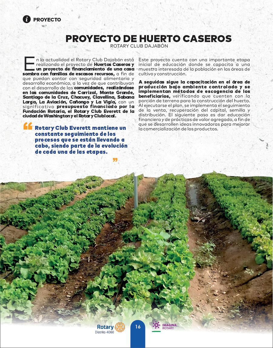 DONDE IMAGINA UN MUNDO ROTARY REPÚBLICA DOMINICANA - JULIODistrito 4060 JenniferJones Presidenta 2022 2023 Rotary International María Virginia Palacios Gobernadora 2022 2023 Distrito 4060 PROYECTO DE HUERTO CASEROS ROTARY CLUB DAJABÓN