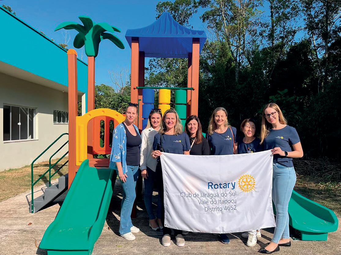 l O Rotary Club de Jaraguá do Sul-Vale do Itapocu, SC, doou um playground ao Abrigo de Serviço de Acolhimento Institucional Mônica Maria Franzner Lescowicz. Em ações semelhantes, nas quais os rotarianos buscam conhecer as necessidades das entidades locais e atendê-las, o clube entregou dois televisores à UTI Cardiológica do Hospital São José, móveis e um ar-condicionado à entidade Mãos Solidárias e ainda participou, com a Secretaria Municipal de Saúde, da divulgação da campanha de multivacinação.