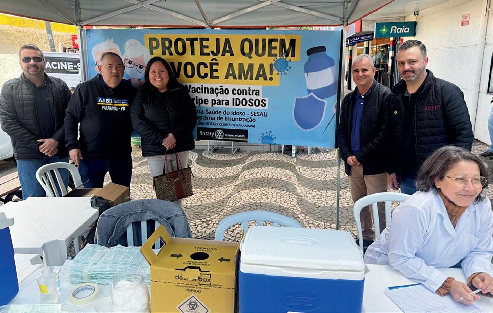 l Em 9 de agosto, o Rotary Club de Paranavaí-Entre Rios , PR, promoveu, em parceria com a Secretaria Municipal de Saúde, uma campanha de vacinação contra a gripe para idosos no calçadão da rua Getúlio Vargas, região central da cidade. A ação contou com divulgação em carro de som, rádios e sites de notícias locais. Em outro momento, o clube preparou uma feijoada em parceria com os Médicos do Humor de Paranavaí, que teve a renda dividida entre a Fundação Rotária e hospitais da cidade.