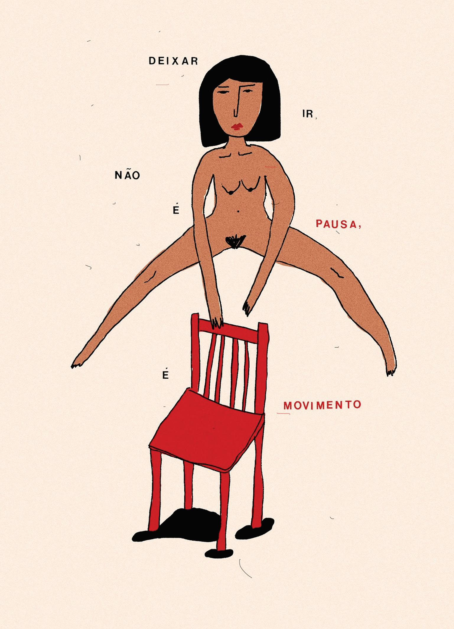 A figura de uma mulher se repete nos traços de Marcela Scheid. Junto com ela, frases curtas e cortantes, como “é preciso criar vazios para novos preenchimentos” e “se acomodar talvez seja o maior dos incômodos”. “A minha arte é inspirada nas minhas vivências, muito do que escrevo sai da terapia”, conta Marcela.