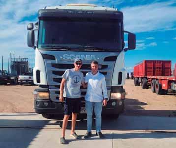 Facundo Gómez recibe de Diego Baldovino de H. Pintado Camiones un Scania G 420 tractor 6x2 del año 2010.