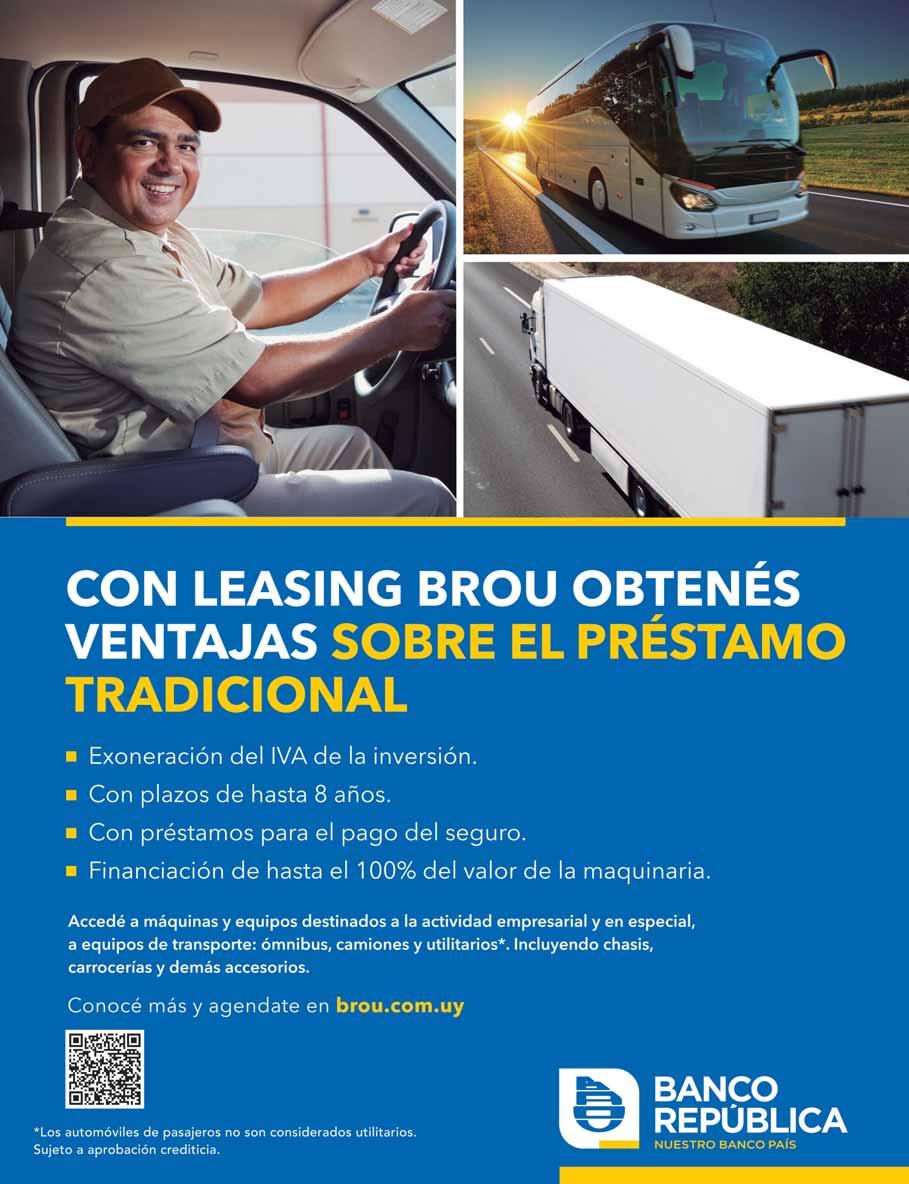 18. Unión de Transportes Fleteros de Mercedes: Una gremial que busca crecer. 26. Alejandro Méndez, Gerente general de TRALE: “Comercialmente, TRALE tiene un importante potencial para seguir creciendo”. 46. Grupo Agencia, en plena renovación.