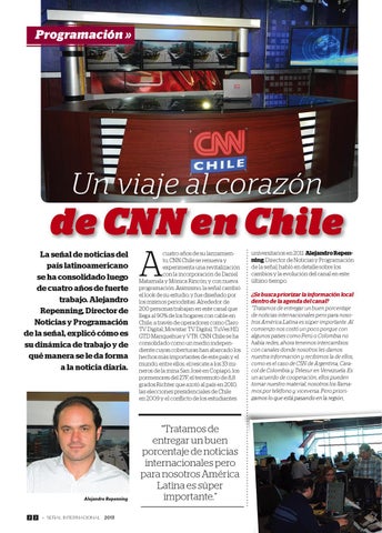 de CNN en Chile La señal de noticias del país latinoamericano se ha consolidado luego de cuatro años de fuerte trabajo. Alejandro Repenning, Director de Noticias y Programación de la señal, explicó cómo es su dinámica de trabajo y de qué manera se le da forma a la noticia diaria.