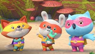 The Miniheroes put all their trust in the “mini mega powers”: Gabin’s Bunny Hug makes everything better, Gaston’s Beary Bounce and Roll cheers everyone up, Jade’s Foxy Ear helps her communicate with everyone, and Juliette’s Owly Eye helps her watch over her friends. Miniheroes, Mega Powers!