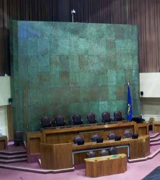 Sin duda, un ejemplo claro del uso del cobre y su transformación en piezas de arte se encuentra presente en el centro neurálgico de la política y creación de las leyes como lo es el Congreso Nacional tanto en la Cámara del Senado como en la de Diputados.