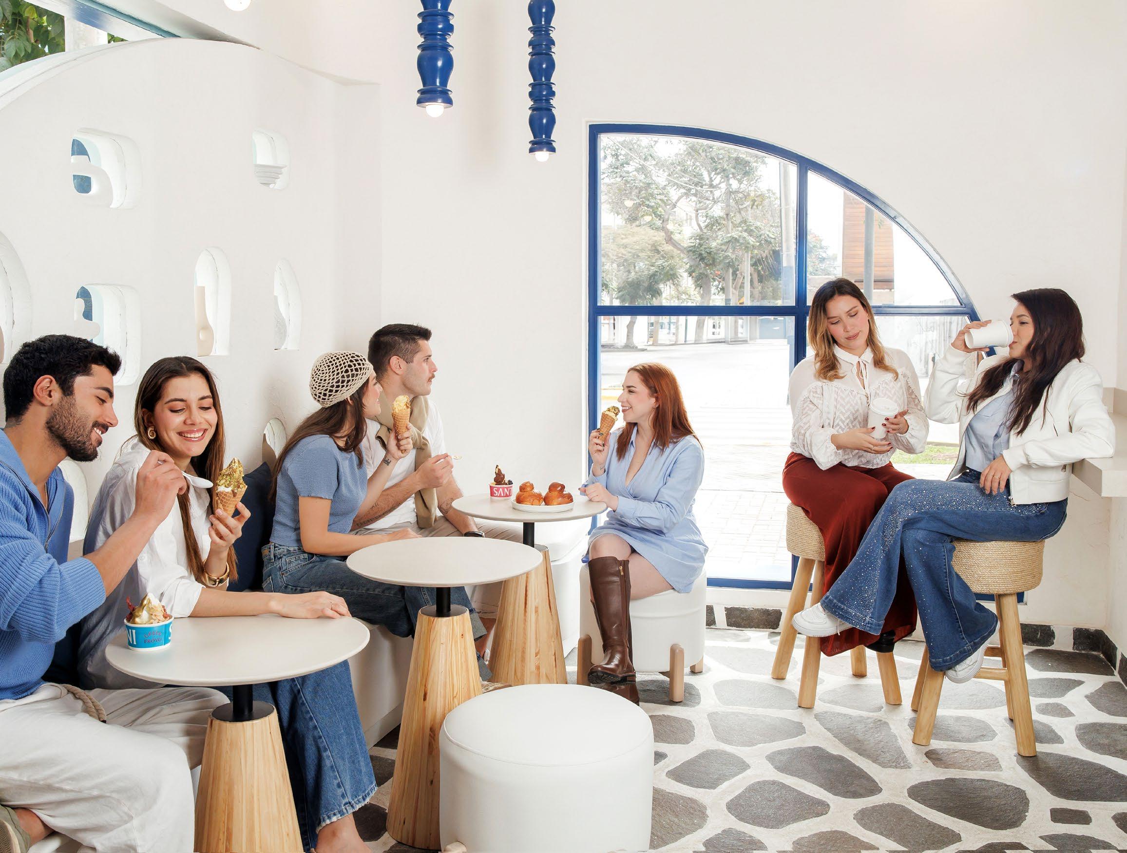 La pureza como lenguaje estético En Santorini, el bienestar no se predica: se diseña. La textura del helado, la arquitectura del local, el aroma tenue que flota en el aire… todo construye una misma idea de armonía. No pretende imitar Grecia, sino reinterpretarla desde la sensibilidad limeña: frescura mediterránea con alma andina. Sabor peruano, raíces griegas, como ellos mismos lo definen.