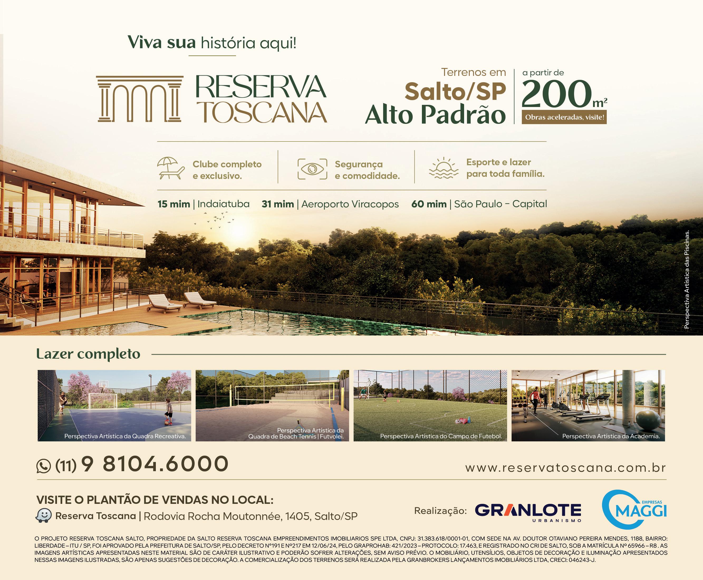 mento econômico e urbanístico da região. “Salto vem se consolidando como um polo de desenvolvimento no interior de São Paulo. Investir em qualidade, credibilidade e inovação é fundamental para atender às demandas de moradores e investidores, e o Estação Real é a materialização desse conceito”. Para ele, o projeto não é apenas mais um empreendimento, mas uma referência de como a cidade pode se desenvolver de maneira planejada, com inovação e atenção às necessidades da população.