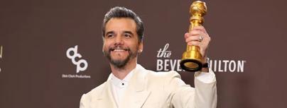 Wagner Moura posa com o troféu do Globo de Ouro 2026, após vencer o prêmio de Melhor Ator em Filme de Drama