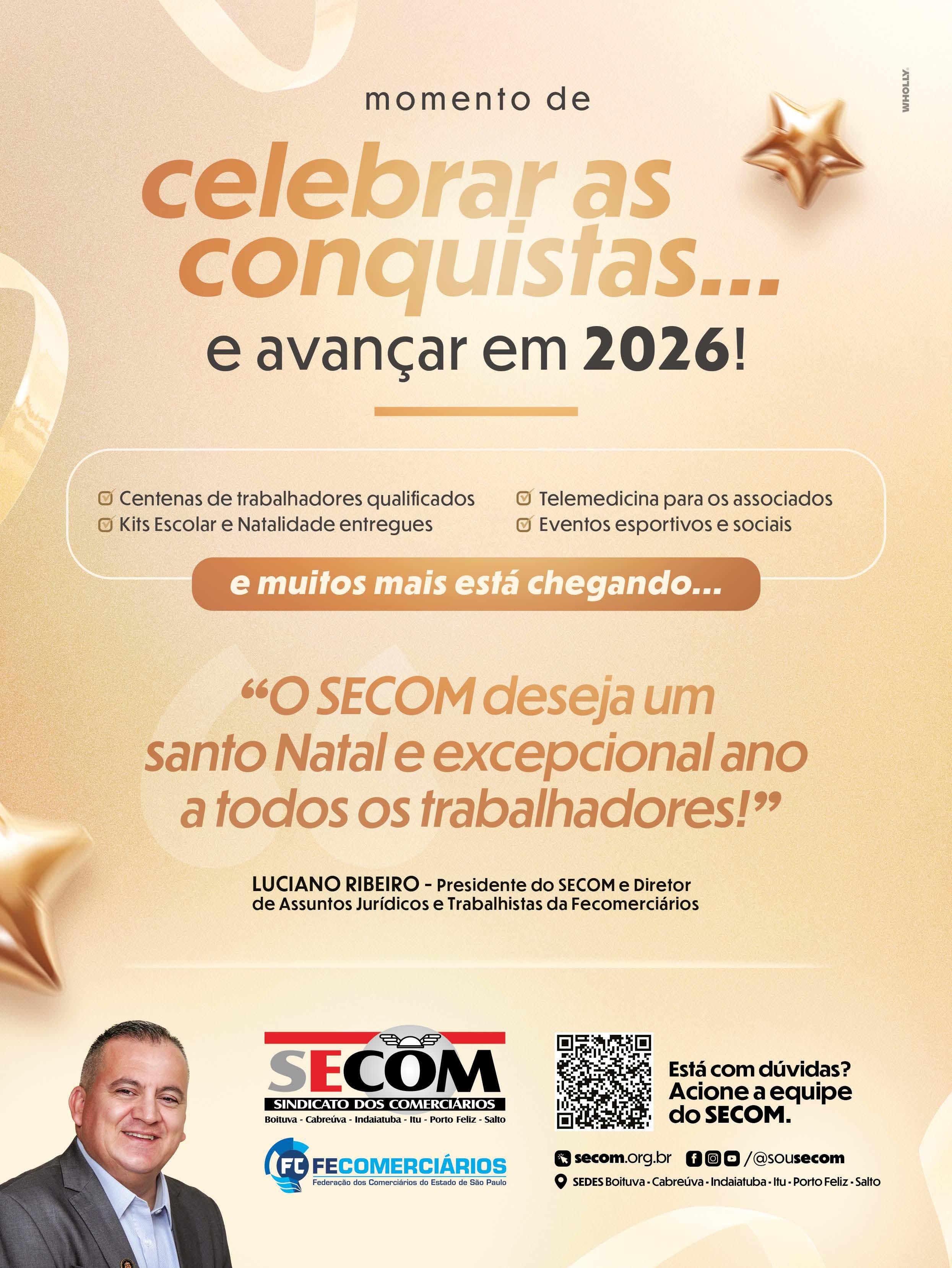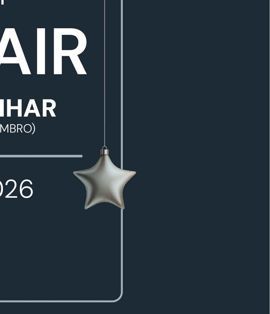 Que 2026 seja um ano de novas conquistas, relações sólidas e decisões bem acompanhadas. Desejamos a todos um período de festas repleto de paz, união e esperança; e que o próximo ano traga ainda mais prosperidade!