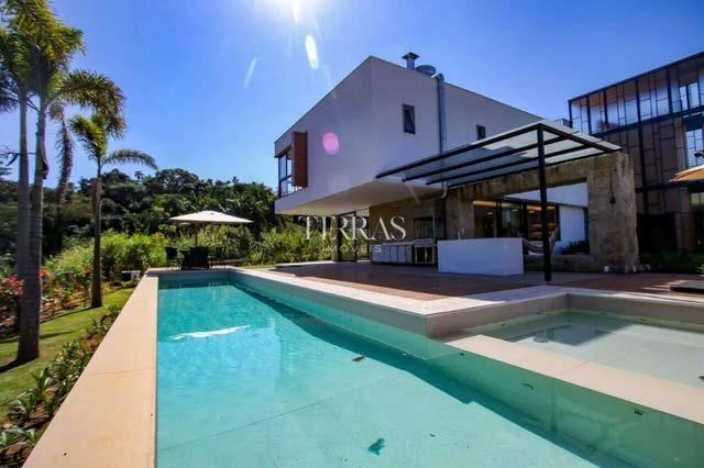 Residência de alto padrão assinada por David Bastos, com 964 m² de área construída em terreno de 2 304 m² Conta com paisagismo exclusivo com espécies raras e adultas, 6 suítes (sendo 1 master), amplas áreas sociais e de serviço, incluindo sala de jantar, estar, home, brinquedoteca, adega e cozinha com despensa Possui espaço gourmet integrado à piscina elevada, vestiário, lavabo e garagem para 4 carros Destaque para o sistema de automação de luz já em funcionamento, cabeamento para áudio/vídeo, Wi-Fi distribuído, cisterna de 16 mil litros, poço semiartesiano com vazão média de 3 mil l/h, dois boilers (1 000 L e 400 L) e marcenaria sob medida em execução Aceita permuta de até 50% do valor e estuda propostas de locação
