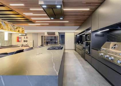 As pias são todas em Corian, e o arcondicionado é do tipo cassete. Destaque também para a incrível adega central e o paisagismo que complementam o charme dessa residência.