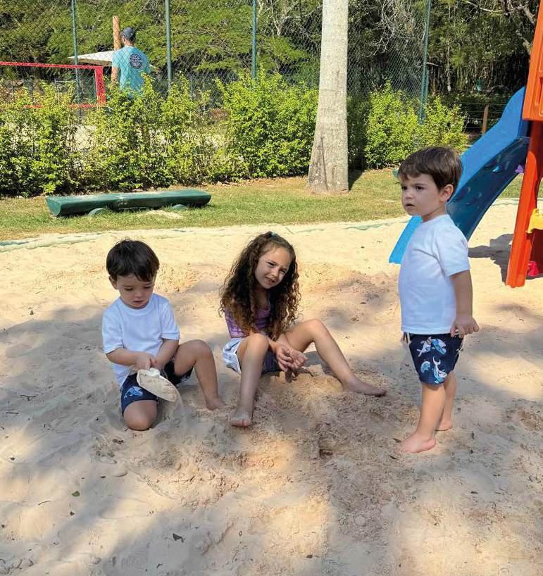 O parquinho também é um local muito frequentado pela família da Daniela Piva. Casada com Frederico, sempre que dá ela costuma ir ao local durante a semana com os três filhos, Manuela 6 anos e os gêmeos Gabriel e Rafael de 2 anos, mas de sábado e domingo é certo que eles estão por lá. “Passeamos ainda pelo condomínio com as crianças que adoram pegar frutas como amora, manga, abacate que tem na rua de casa. Eu também pratico Beach Tennis, corrida e frequento a academia”, comenta Daniela, cuja história com o condomínio começou com seus pais que se mudaram em 1994, na casa onde há 1 ano e meio sua família passou a viver.