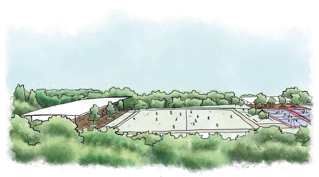A área esportiva também passará por uma reorganização. As quadras de tênis e o beach season serão mantidos, e uma nova academia já está projetada. Toda a circulação será replanejada, e as quadras centrais, atualmente dedicadas ao tênis e próximas à academia, receberão banheiros, vestiários, depósito e um mini market. “Também está previsto um espaço teen, com possibilidade para algumas quadras de pickleball, atuando como um espaço centralizador e conectado com o subsolo da academia”, explica Lanza.