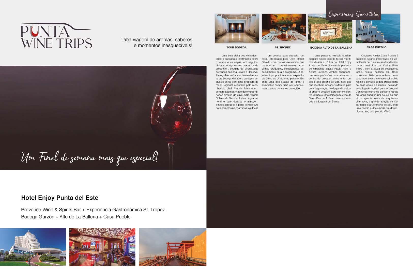 Café da manhã restaurante Las Brisas, saída para Bodega Garzón visita, degustação e almoço, final de tarde, aproveite o SPA e a su nova piscina e comece a noite com um drink no Provence