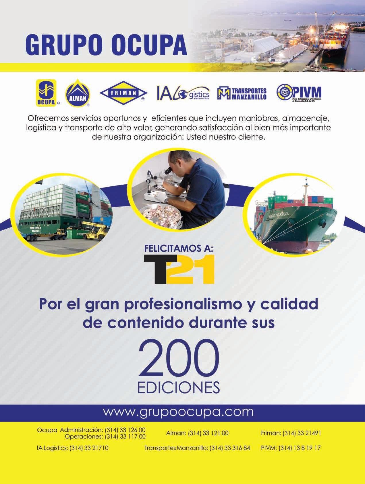 A nombre de la Asociación Nacional de Productores de Autobuses, Camiones y Tractocamiones (ANPACT), me permito extender una felicitación a todos los que participan en Grupo T21 y que en esta edición de abril 2016, llegan a las primeras 200 ediciones de un trabajo profesional de mantener al día al sector del transporte y la logística, con información veraz y objetiva; además de continuar dando un mejor servicio a través de las nuevas plataformas de información.