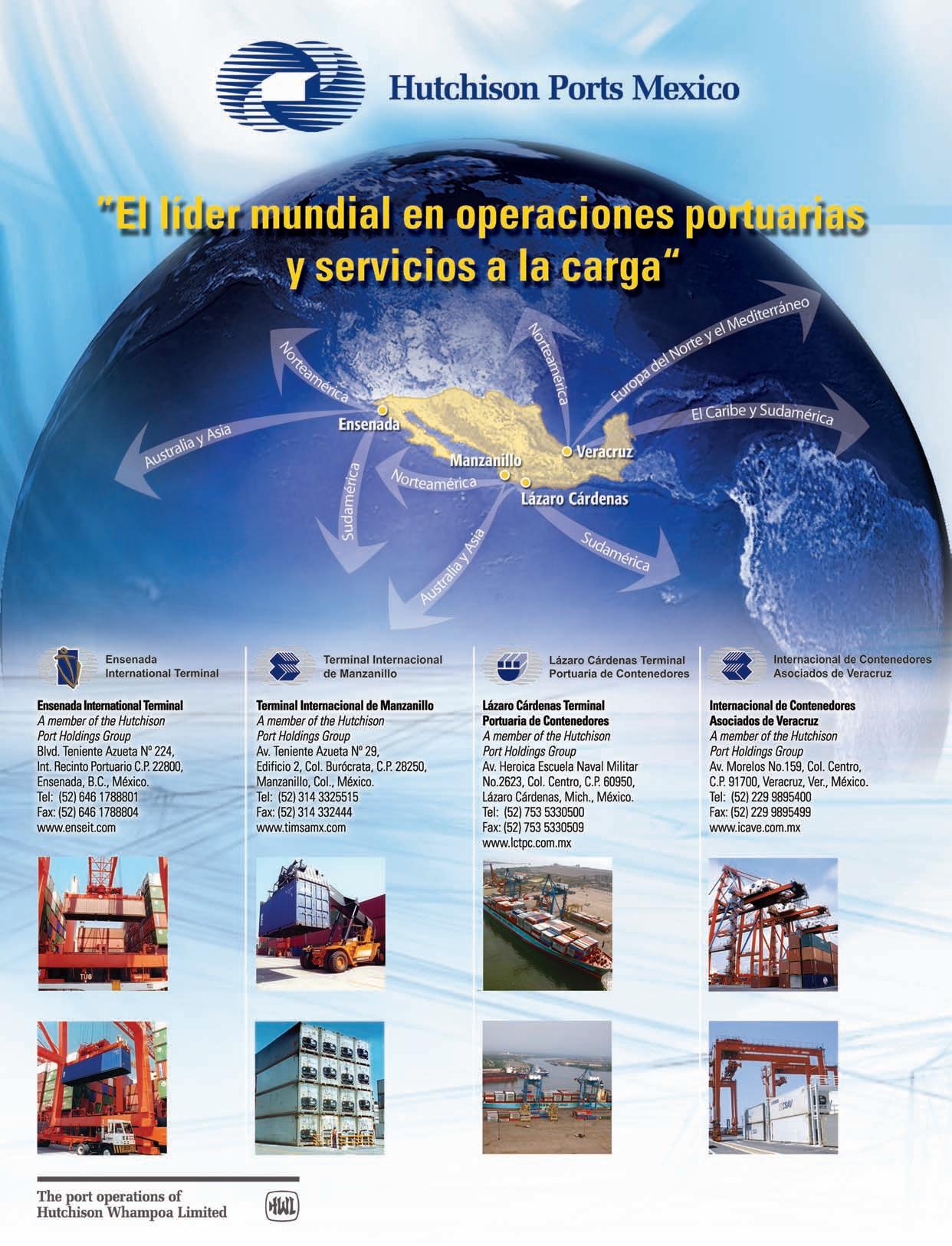 ANTEELCONSTANTECRECIMIENTODELPUERTO deEnsenada,eloperadorportuario HutchisonPortsMéxico,instalódosnuevas grúasdepórticoPostPanamax,comoparte deunainversióndeseismillonesdedólares enequipamientoparalaterminal.