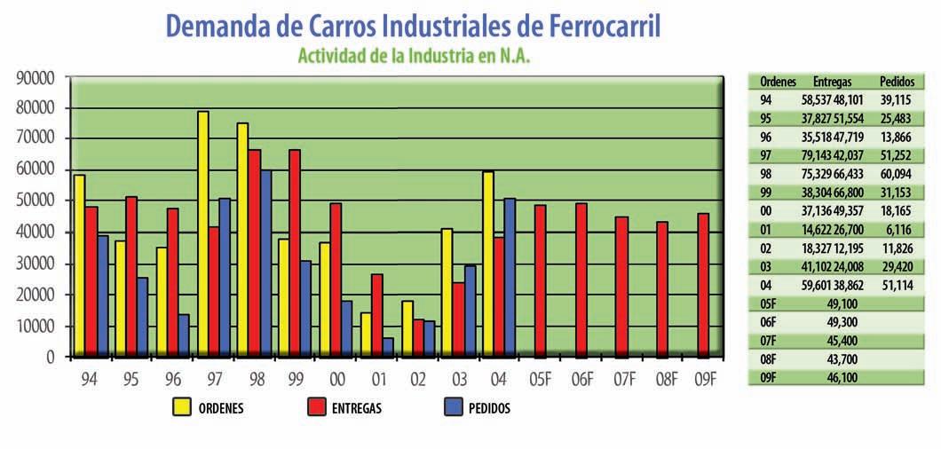 ConformeaestadísticasdeTrinity Rail,a finalesdel2004lasórdenesdefabricaciónen Norteaméricasumabanlos60milequipos,mientrasquelaindustriasóloentregó38milysetiene unacumuladoenlistadeesperade51milequipos.