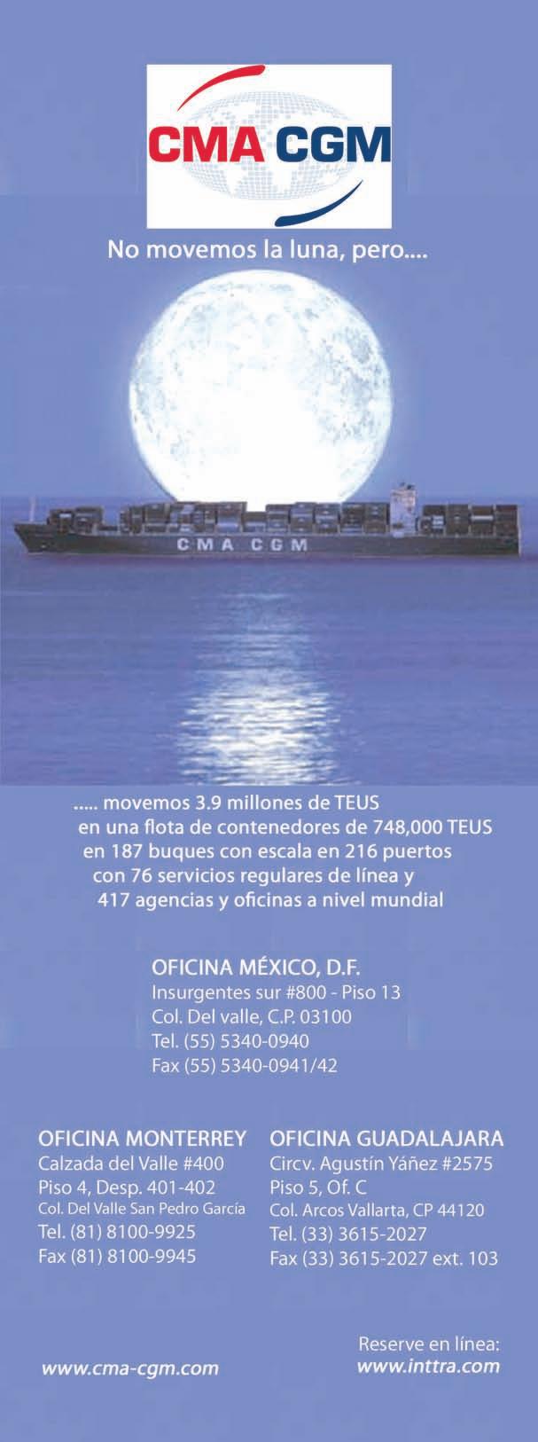 “Tenemoshermanamientosconpuertos comoShangai,Houston,KansasCity,Dallasy próximamenteconLongBeach;asimismotenemosrelacionescomercialesestrechasfirmadas conestadoscomoGuanajuato,NuevoLeón, Jaliscoyesperamoshacerlotambiéncon ZacatecasyTlaxcala”,detallaMora.