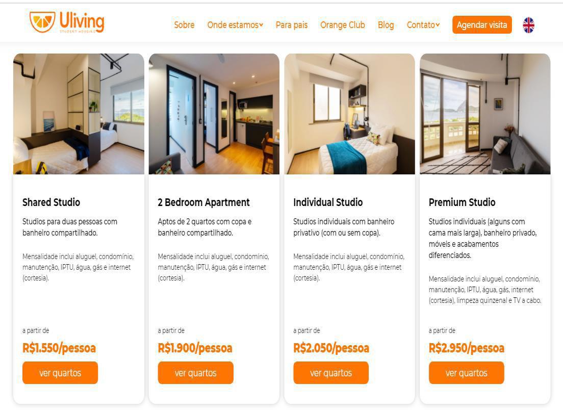 SOBRE a Uliving: Um espaço para dividir com amigos, professores, chefs, engenheiros, artistas e você mesmo.. Uliving- students housing, [s.d.]. Disponible en: https://uliving.com.br/rio.