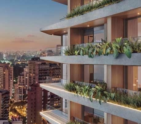 O Bueno Brandão 257 é mais que um endereço. Trata-se de um retiro no bairro paulistano da Vila Nova Conceição, com assinatura Königsberger Vannucchi Arquitetos Associados, escritório americano responsável por ao menos um milhar de projetos de primeiríssima. A torre tem apenas uma unidade por pavimento, integrada à natureza, seja pela imperdível vista ou pelo projeto paisagístico nos terraços com floreiras.