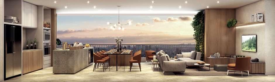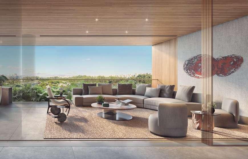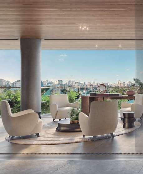 o prazer de estar a poucos passos de uma charmosa pra ça, ao estilo de vida mais tradicional. A tranquilidade de residir em um bairro seguro e com ampla oferta de passeios. O conforto de morar em um ambiente amplo, com 500 me tros quadrados nas unidades padrão, e a exuberante vista mais desejada de São Paulo: o Parque Ibirapuera.