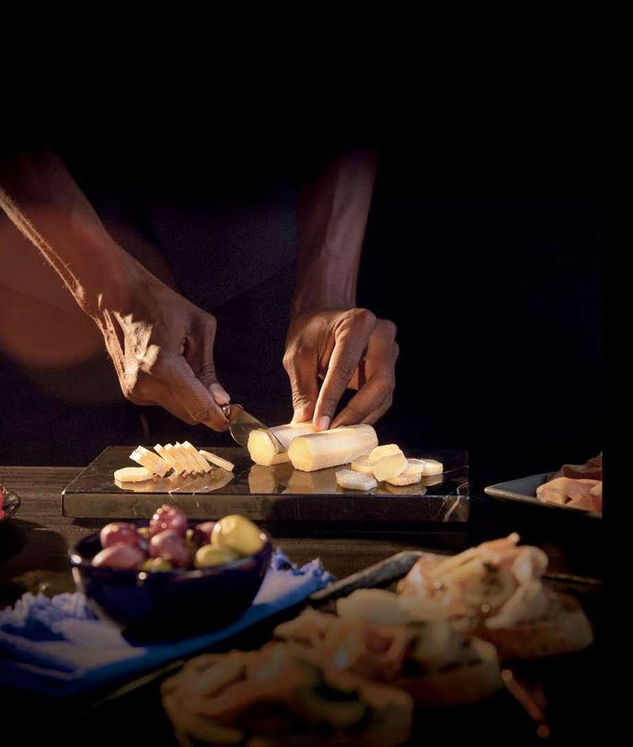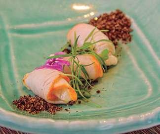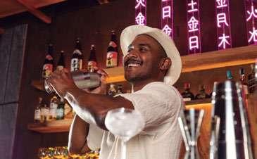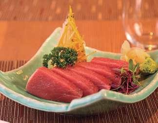 Já a carta de drinques conta com o talento do maestro La ércio Zulu. O bartender apresenta bebidas autorais e clássicas. Entre as criações, vale brindar com o Katana (saquê Kuromat su, Vermut Sherry, Zacapa 23 e lâmina de açúcar com pimen ta japonesa) e o Kasato Maru (saquê Kurapack, Visinata Cher ry, capim-santo, chá verde e fatia de pera com infusão de Licor 43). Tudo muito bem harmonizado. T P