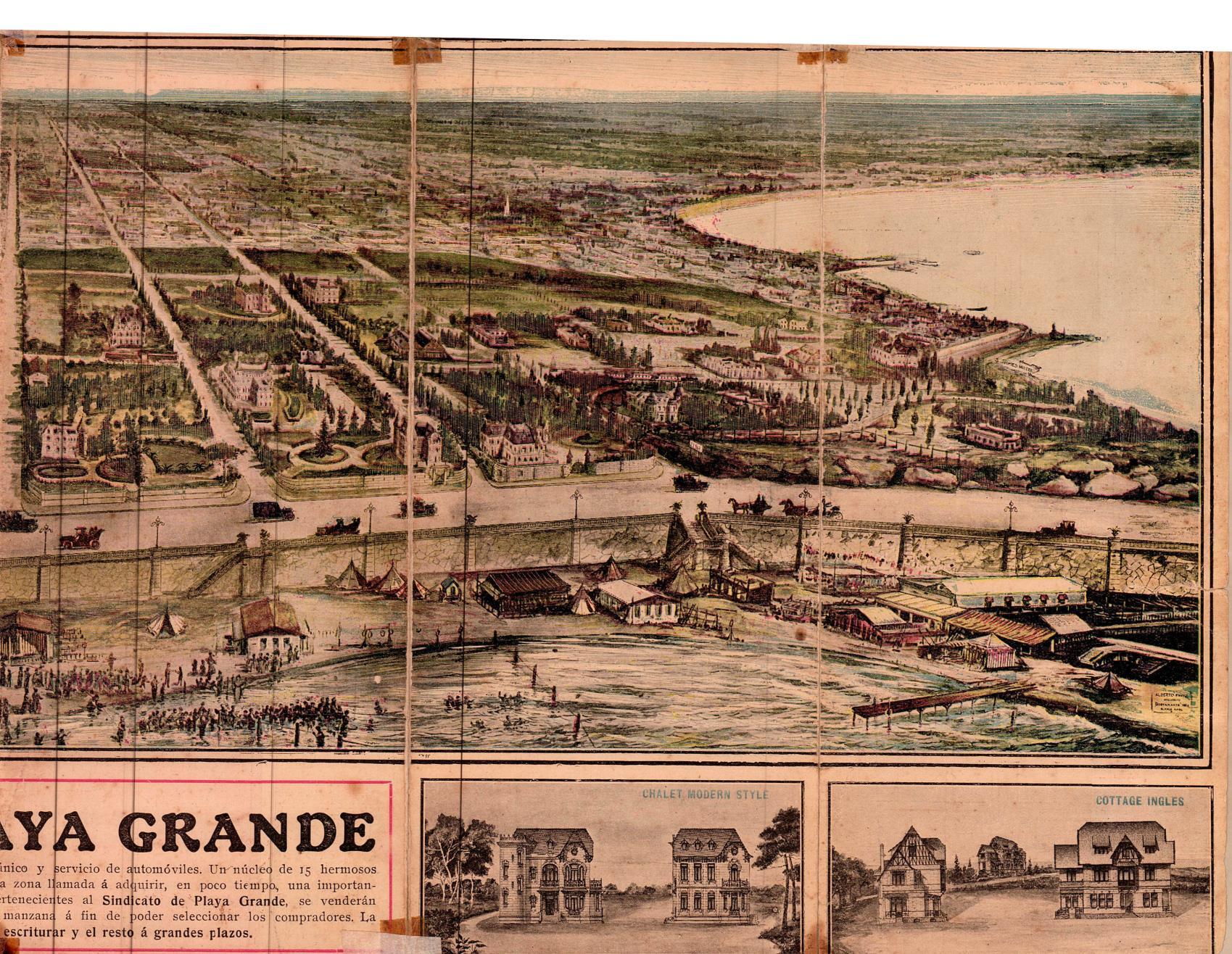 El proyecto, ambicioso, corría sin duda parejo con la promoción de una preciosa playa a la que la Municipalidad ha dado el nombre de Playa Grande Y las explicaciones tampoco tienen desperdicio: la topografía de esos terrenos es excepcionalmente bella porque desde ellos se abarca todo el panorama formado por la ciudad de Mar del Plata y al mismo tiempo el espectáculo incomparable del mar.”