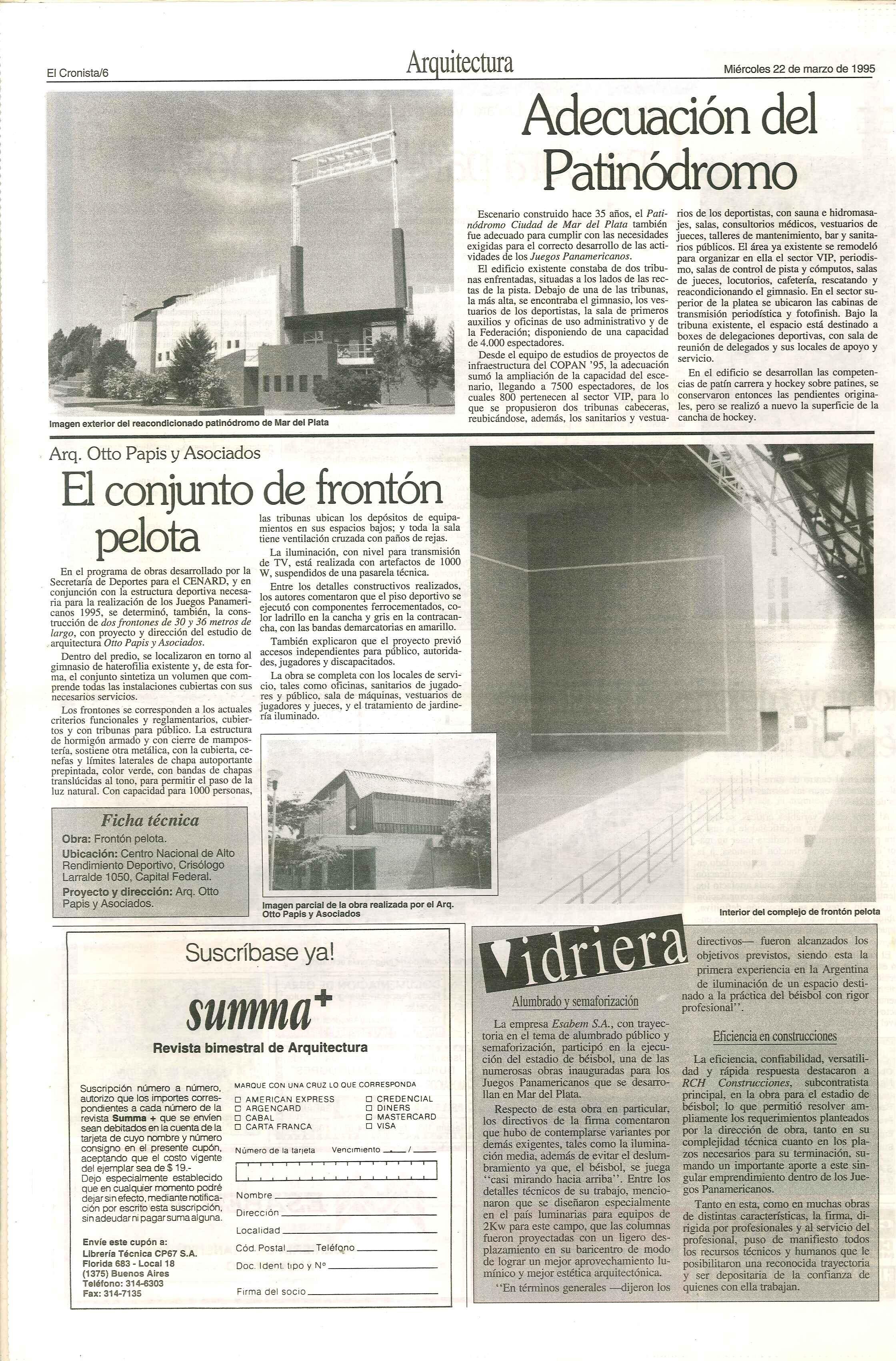 Obra: Complejonatatorio,Juegos Panamericanos1995. Ubicación: ParquedelosDeportes, Mar delPlata.