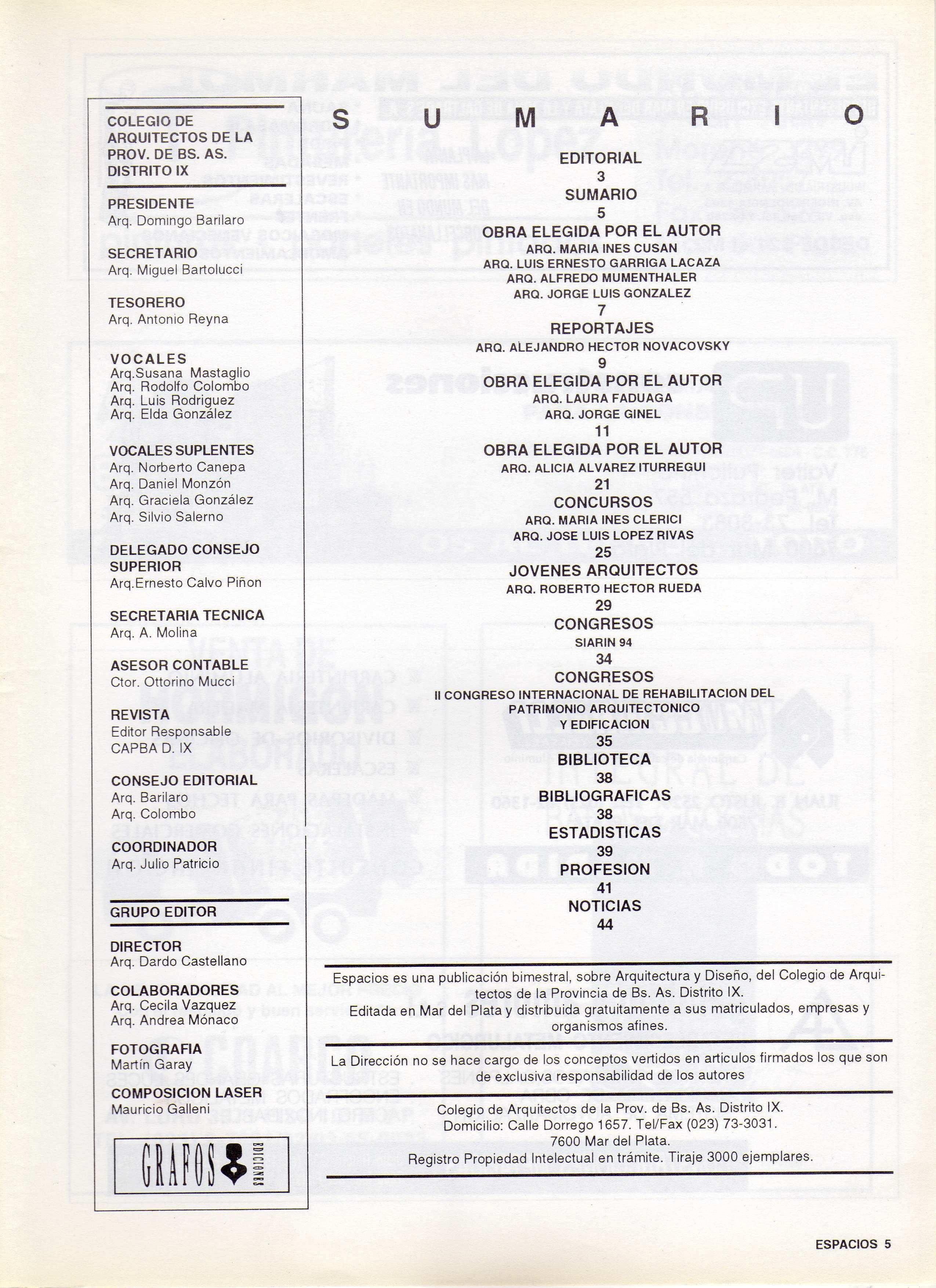 Revista Espacios 3 by COLEGIO DE ARQUITECTOS de la Provincia de BS AS Dist 9 CENTRO DOCUMENTAL - Issuu