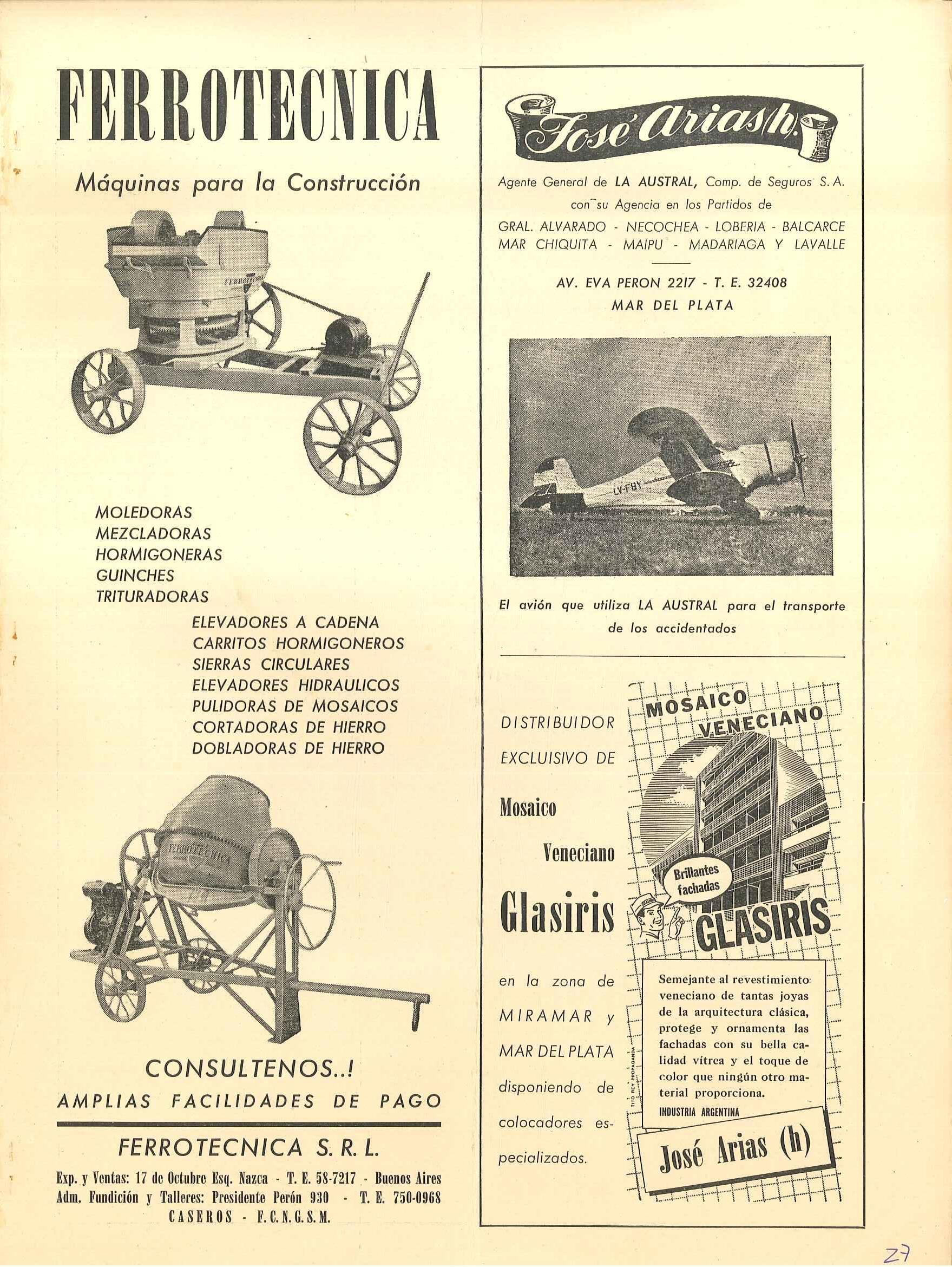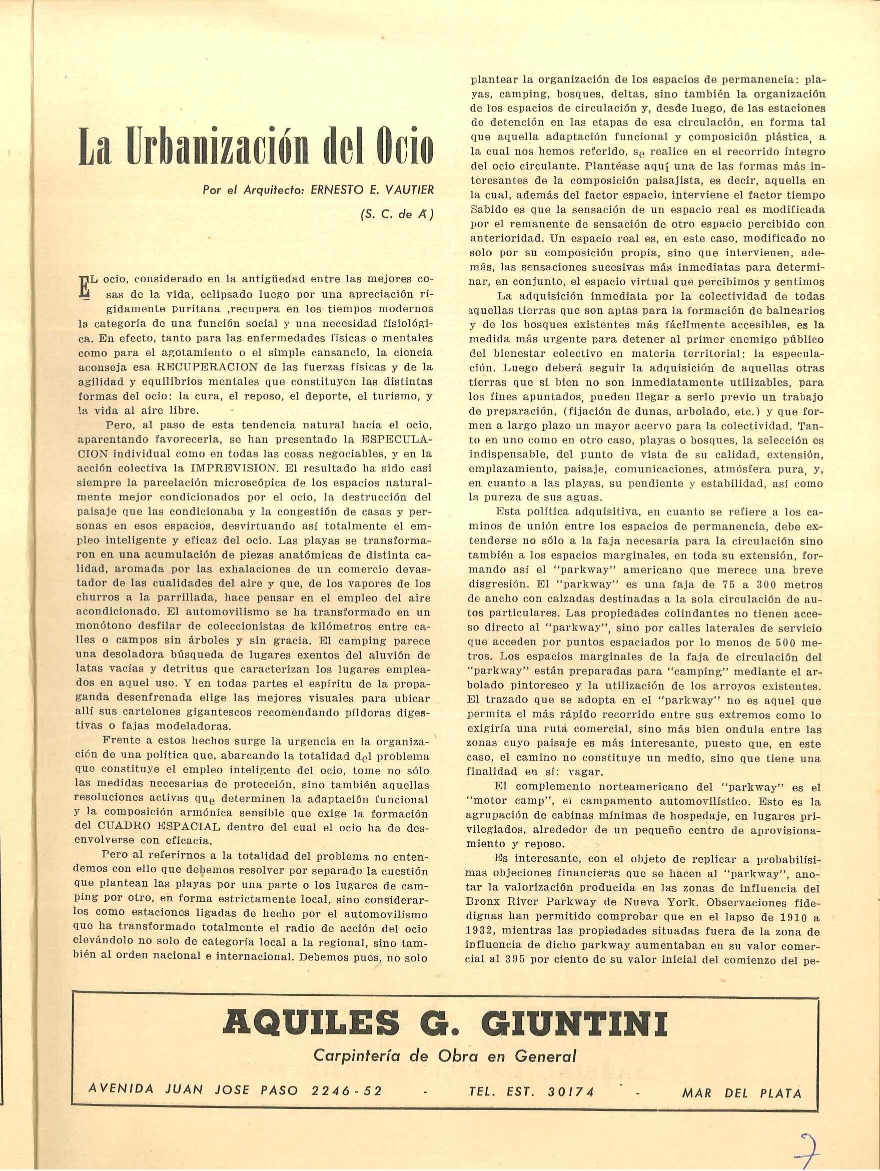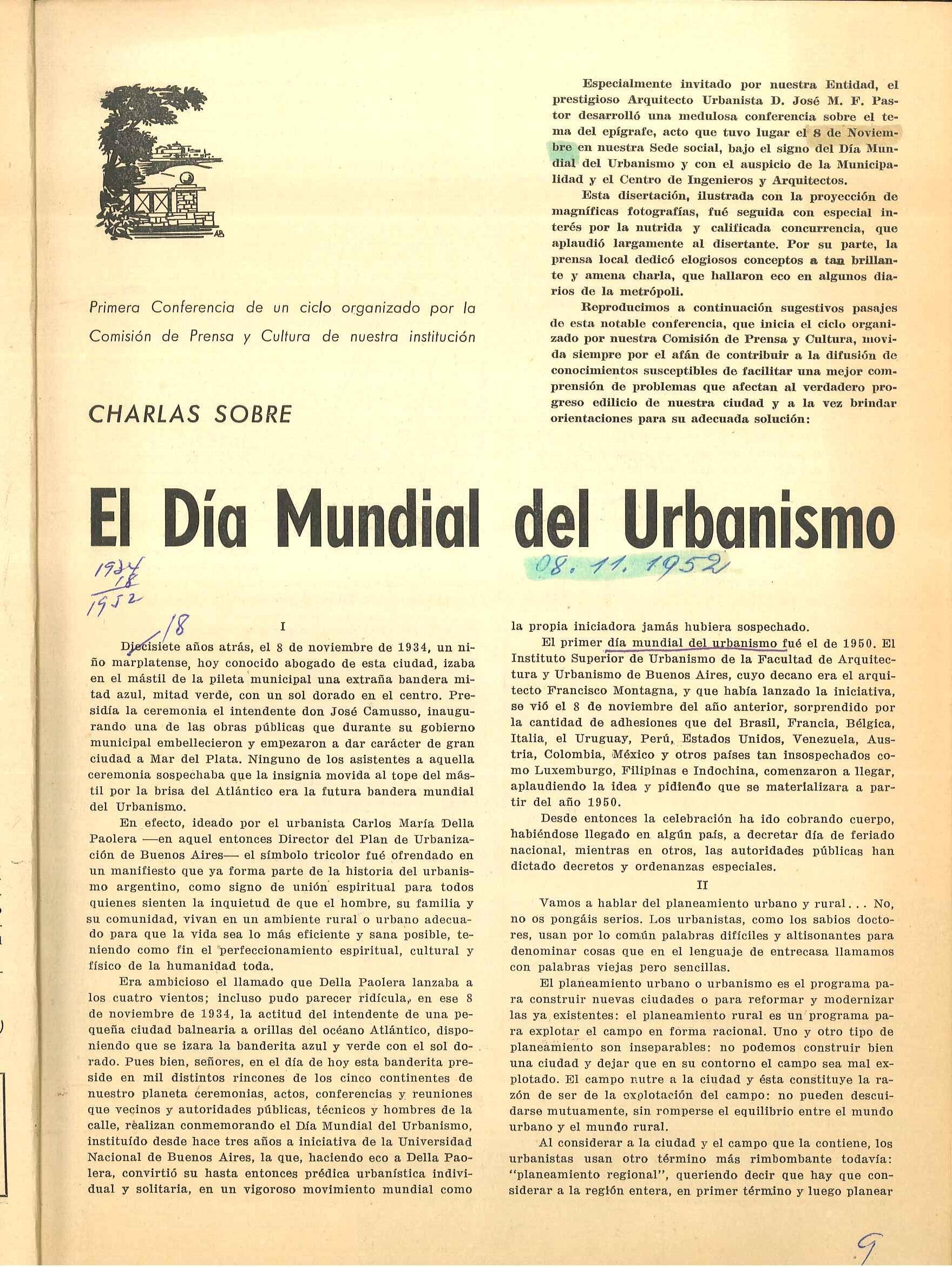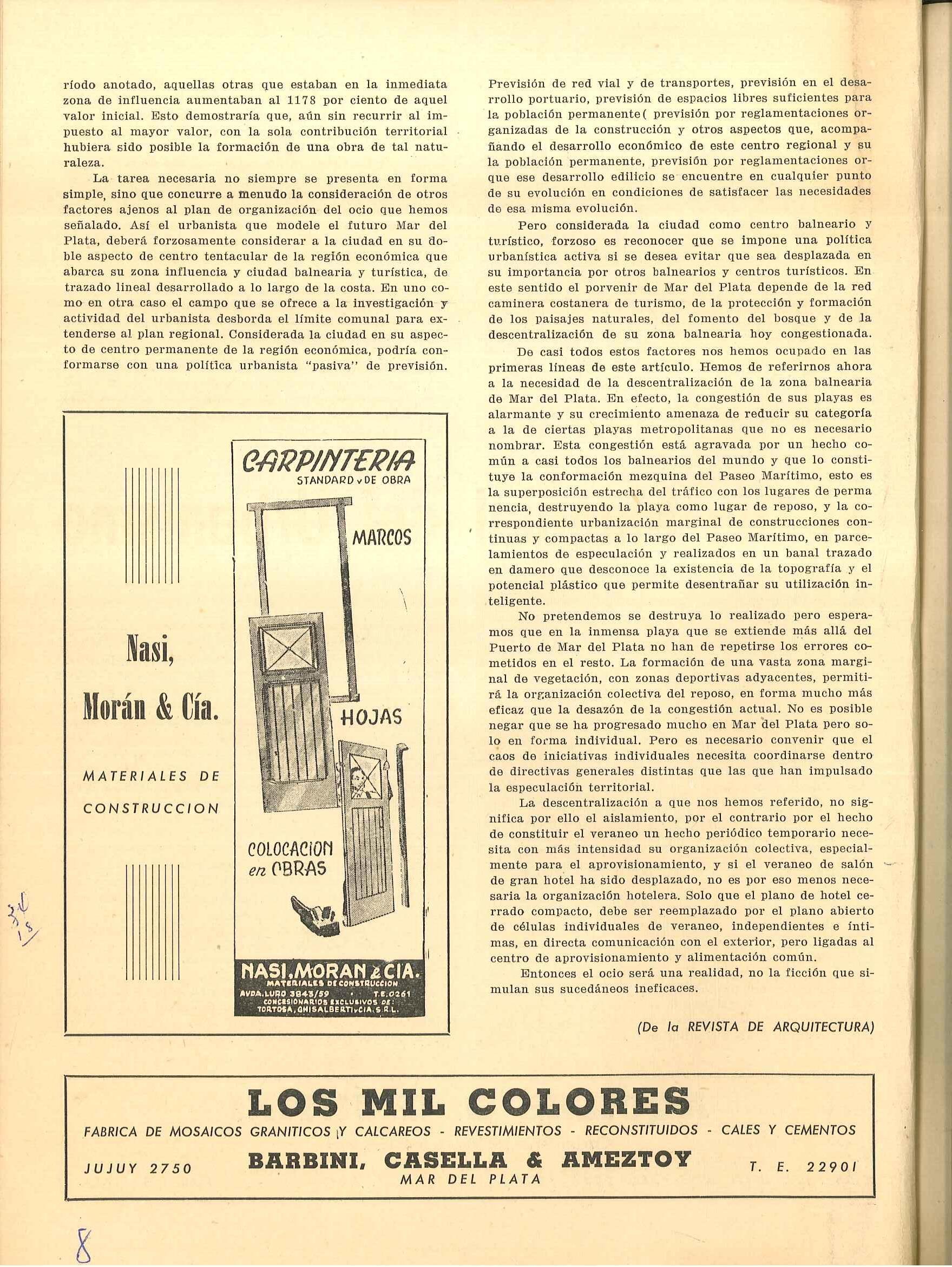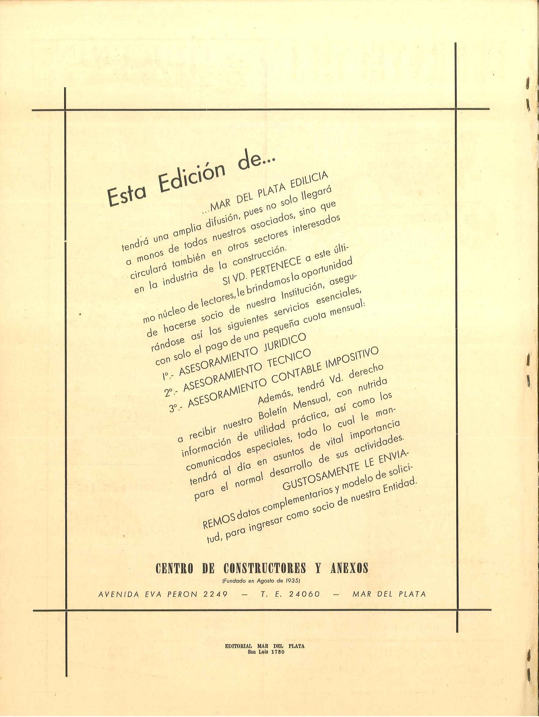 Revista del Centro de Constructores y Anexos | 1952 | Nota de Jose Pastor Arquitecto Urbanista "Mar del Plata necesita organizar su progreso" | Nota Ernesto Vautier "La Urbanización del Ocio" | Charla "Día Mundial del Urbanismo" | Mar del Plata en Cifras: Ingreso de Turistas 1886 a 1952; Construcciones 19521 a 1951