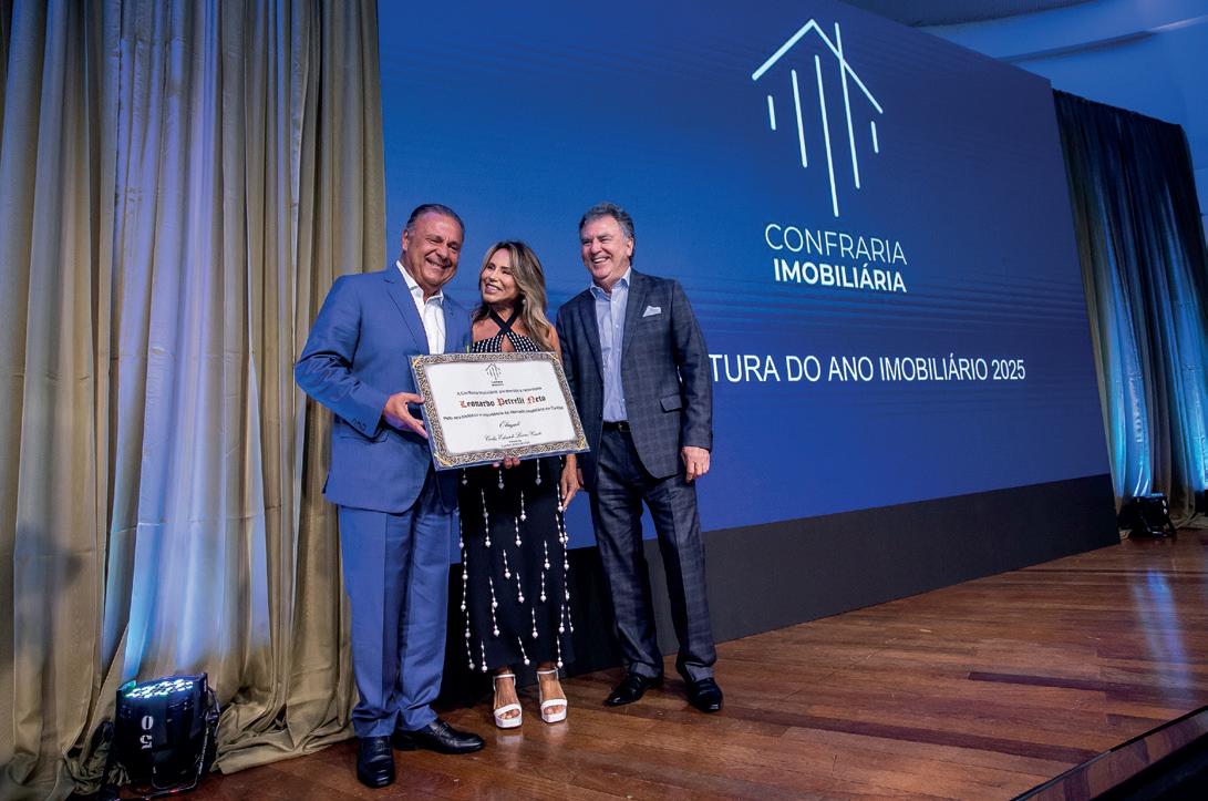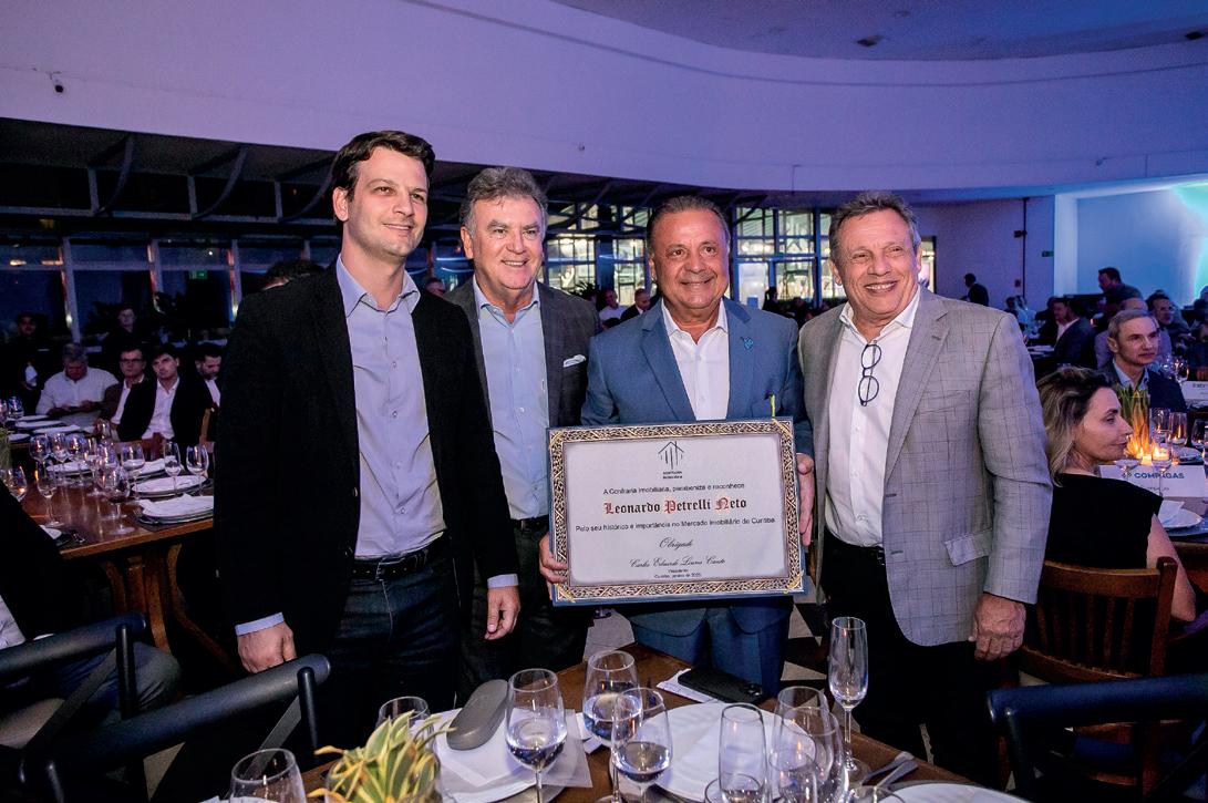 A Confraria Imobiliária de Curitiba homenageou Leonardo Petrelli, presidente do Grupo Ric, por sua contribuição ao mercado imobiliário local. O evento, realizado no Salão Verde do Clube Curitibano, também marcou o início do Ano Imobiliário de Curitiba e contou com a presença de 250 convidados e autoridades.