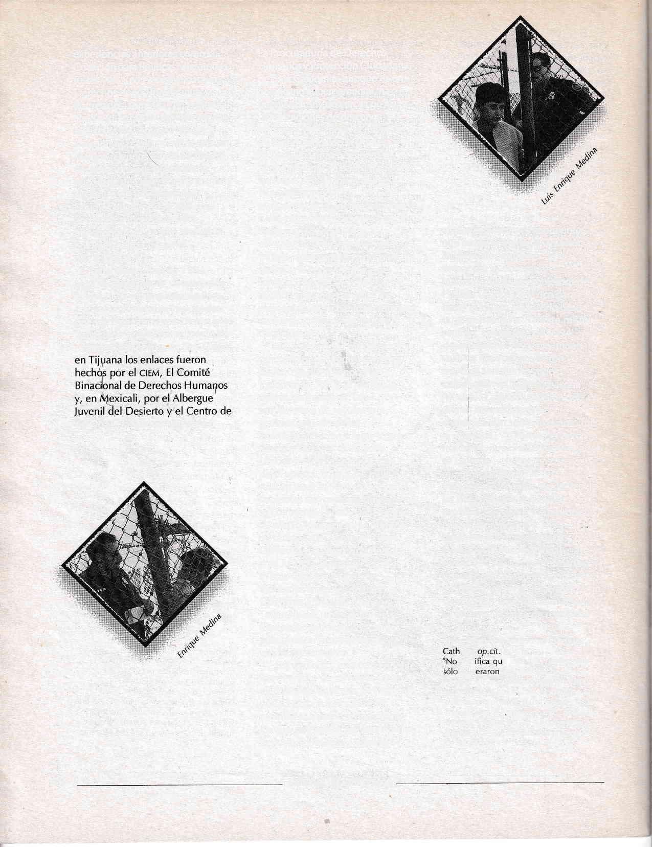 2José Luis Pérez Canchola, "La inmoral política migratoria de los Estados Unidos", en "Derechos Humanos y Ciudadanía". La Jornada, suplemento mensual, núm. 5, febrero de 1997. 3La información aquí contenida fue obtenida de notas periodísticas de los diarios E/ Mexicano y Cambio de Tijuana y La opinión de Los Angeles, publicados entre el i y 30 de octubre de 1994.