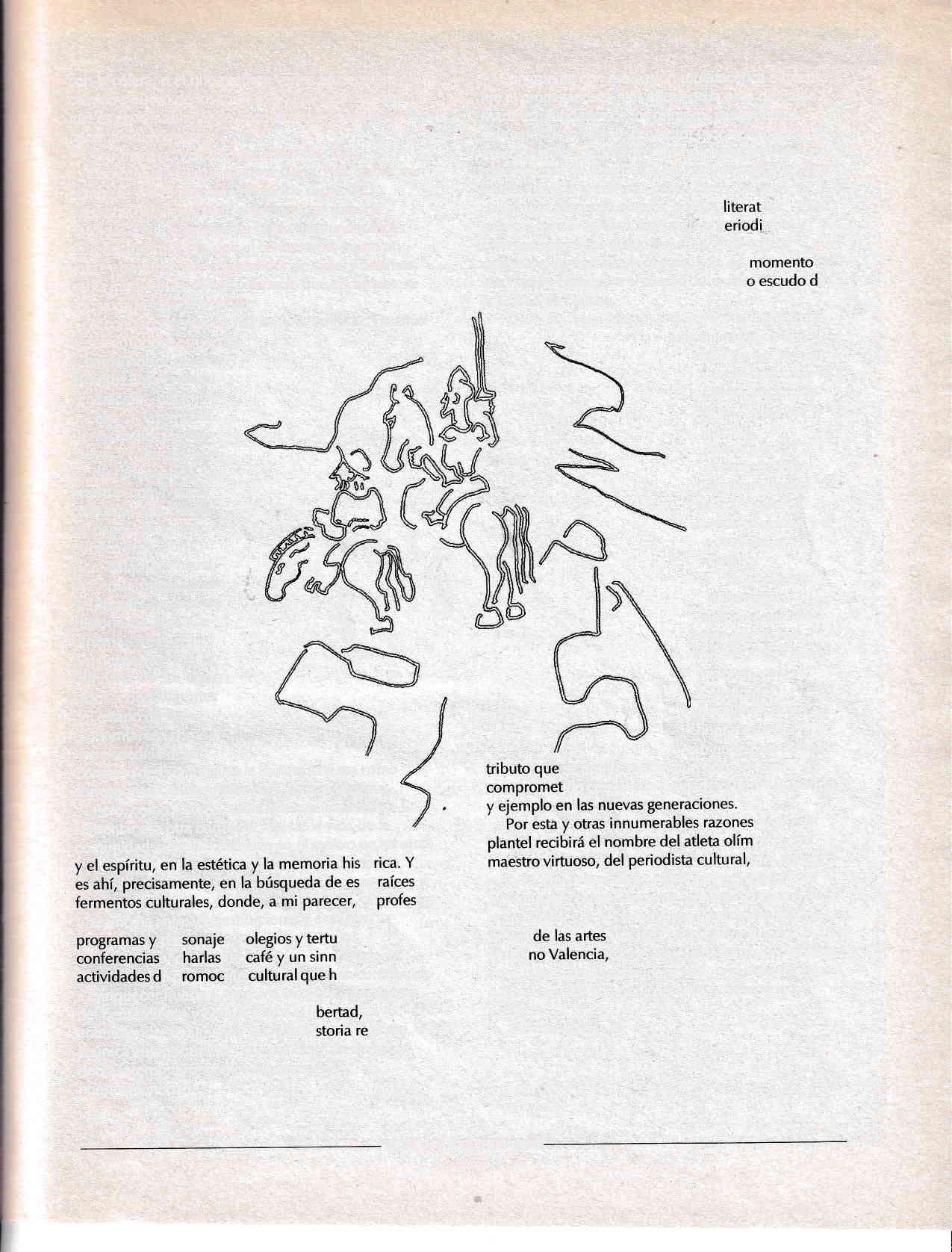 Por esta y otras innumerables razones hoy, este plantel recibirá el nombre del atleta olímpico, del maestro virtuoso, del periodista cultural, del novelista y poeta, del universitario ejemplar, del sugestivo e inierminable conversador, del animador tiLánico de las humanidades, y del también ferviente consultor de las musas de las artes y la vida: el profesor Rubén Vizcaíno Valencia, sí, de aquél que ha vivido la cultura como una hazaña de la identidad, la identidad como actitud moral y la moral como una consecuencia estética.