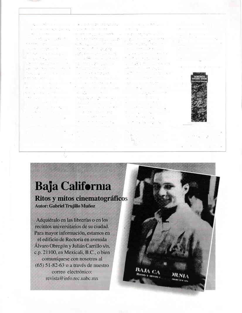 o en los tecintos unirersitarios de su ciudad. Para más información visítenos, estamos en el edificio de Rectoría en A. Obregón y Julián Carrillo s/n. en Mexicali, B.C., o bien, comuníquese con nosotros al (65) 51 82 63 o a través de nuestro correo electrónico: editorial@info.rec.uabc.m¡
