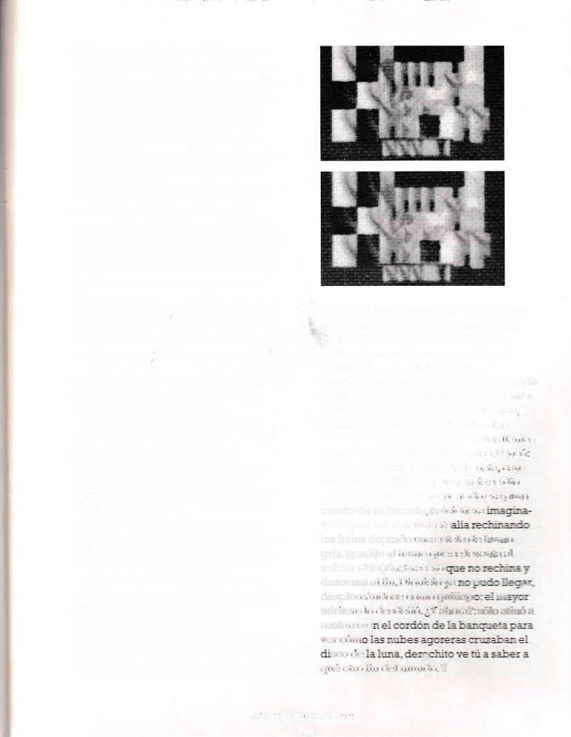 Las descdpciones grotescas, cuasif antásticas, alternan eü este páúatb con detalles realistas y narraciones donde lo objetivo y lo subjetivo luchan por convivir o predomi¡ar. Lo objetivo ayuda porque sitúa. pero Io subjetivo salvi1. Nad¡ es cierto, todo puede ocu¡rir. En Ia otra historia, "La Bamba , elpersonaje es un 'hulato lobo", lüestizo de negro e ind;a, que pasa tanbién por Llna se¡ie de cambios confomladores de su multicultural peft on¿lidrd. en nedio de la supervi\'encia- lij üue e y los golpcs de iurÍ: De luevo aquí. es el e.pir::-:. Ia rerninisccncie Prr.i,-¡li-, : instaD¡áne¡ del \rr. -,-' mueve v da se¡rii,, : : -del perst»raie .r:.:: ., circunil.lr'rar-:. :::.:. ¡dv.-riri .::.- : religi,. :, - : ::a:: : -:::