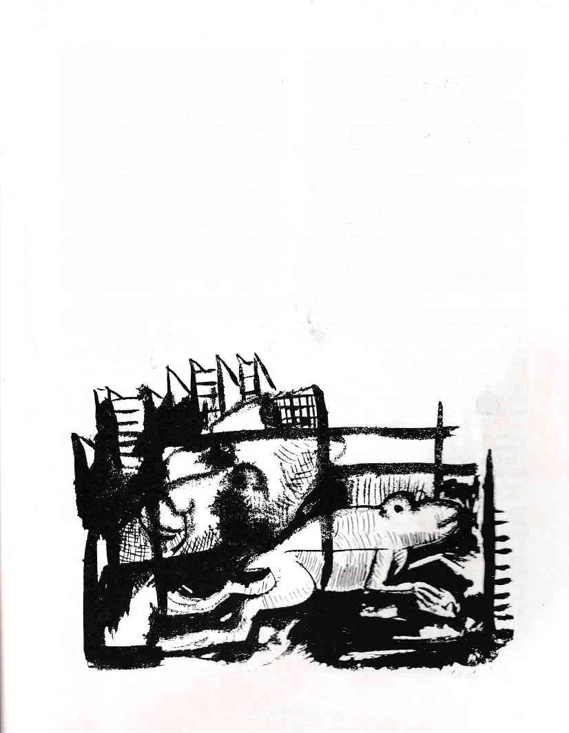 lecho er silcncio, Lrisbisc¿ndo uDa lelaúí¡ en lcnsLra b¡n¡Íl. !,ludo ) e¡carccido. Su p¡drc. Ngolo rezando sobrc aquella tumb¡, unll curiosa plcgaria dirisida a Xochipilli. que anuucia al sol matutino: a Jesús Crislo. que murió po¡ nosotros: a Chun1bé. que se lleva ¿ los ancianos ) a los cnt'ermos. Chunlbé, Xochipilli. Jesús.