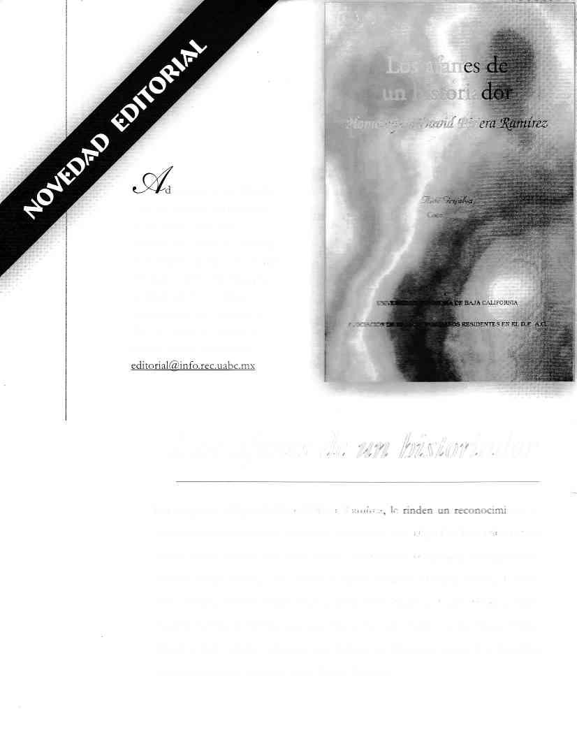 En sll nu.\ ¡ época la revista del Instituto de Investigaciones Hjstó¡icas dc la rrrBC. incluye 1as colabo¡aciones de r'¿r¡ios historiadores de reno¡rbre. Sobresalen los trabajos "Treinta años de miner'ía en Baja Calilbmia. I870- I990 ' de Hilarie J. Heath: GLrilletnro And¡ade. Los alanes de un