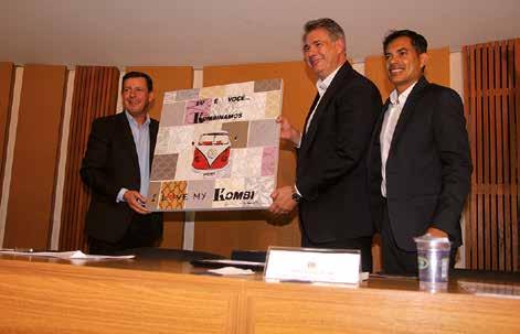 Os veradores com o presidente da Volkswagem e o prefeito Orlando Morando