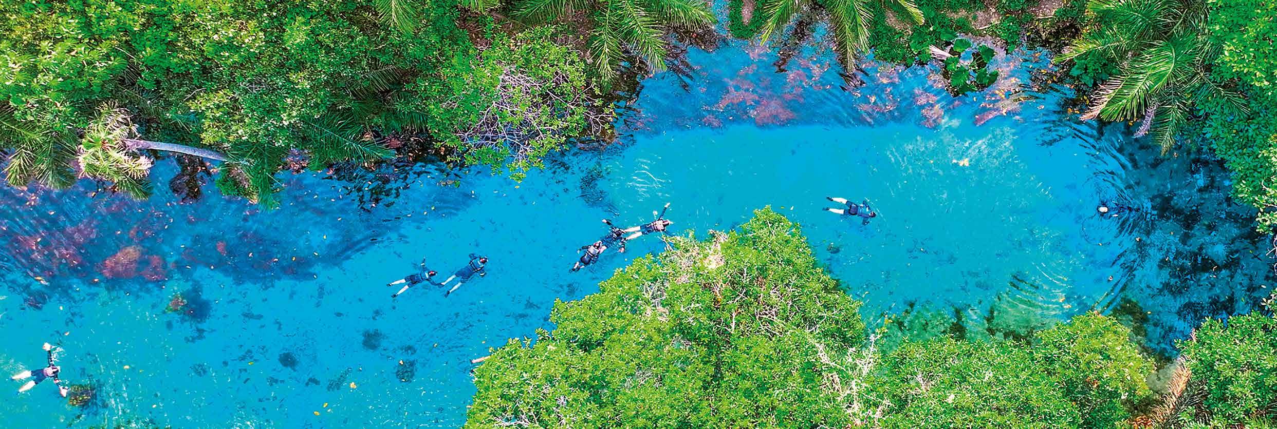 Fazer flutuação e relaxar no Balneário da Nascente Azul