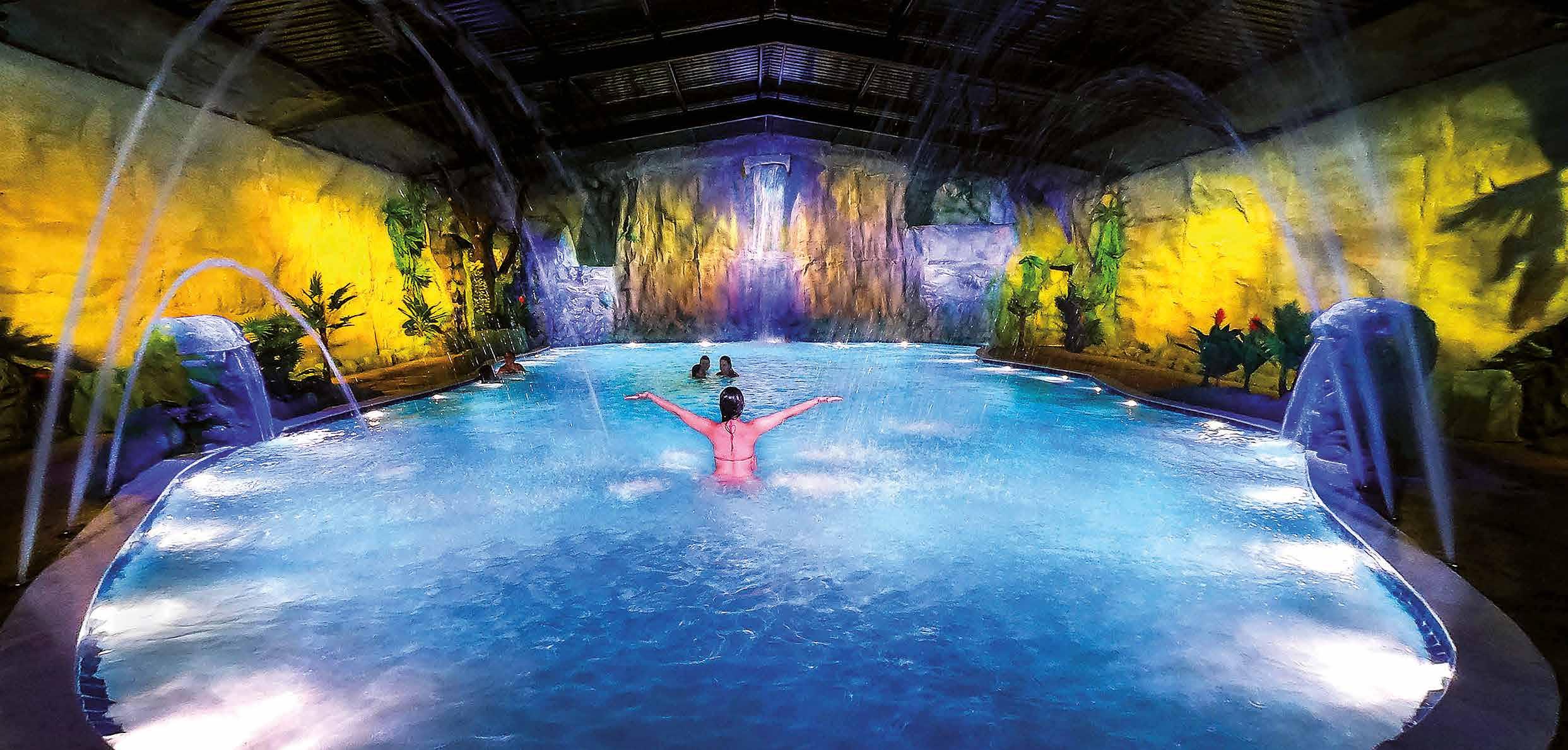 O hotel abriga uma piscina temática única no Brasil: uma “caverna” aquecida com iluminação cênica, jatos de água, cachoeiras e jacuzzi. Um verdadeiro paraíso para relaxar.