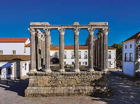 No centro histórico de Évora, Patrimônio Mundial pela Unesco, ergue-se o Templo Romano, com suas colunas coríntias que rendem fotos inesquecíveis. É o ponto de partida perfeito para explorar a cidade, que combina charme medieval, boa gastronomia e história a cada esquina.