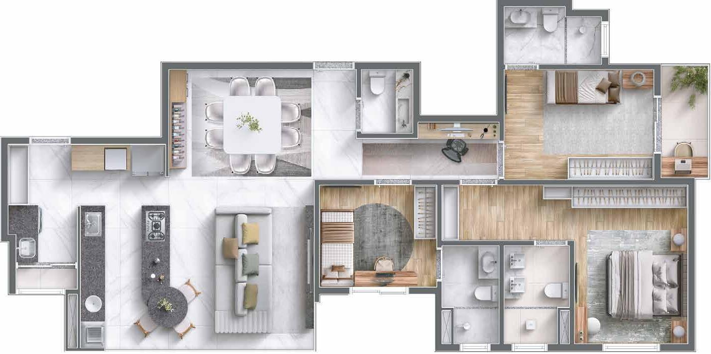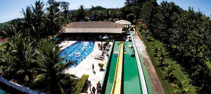 Parque aquático com cinco piscinas, toboáguas, quadras, salão de jogos, fazendinha com minizoo, lago com tirolesa, redário, além de serviços opcionais como massagem e babá. A gastronomia também é destaque, com cardápios que valorizam sabores típicos da fazenda.