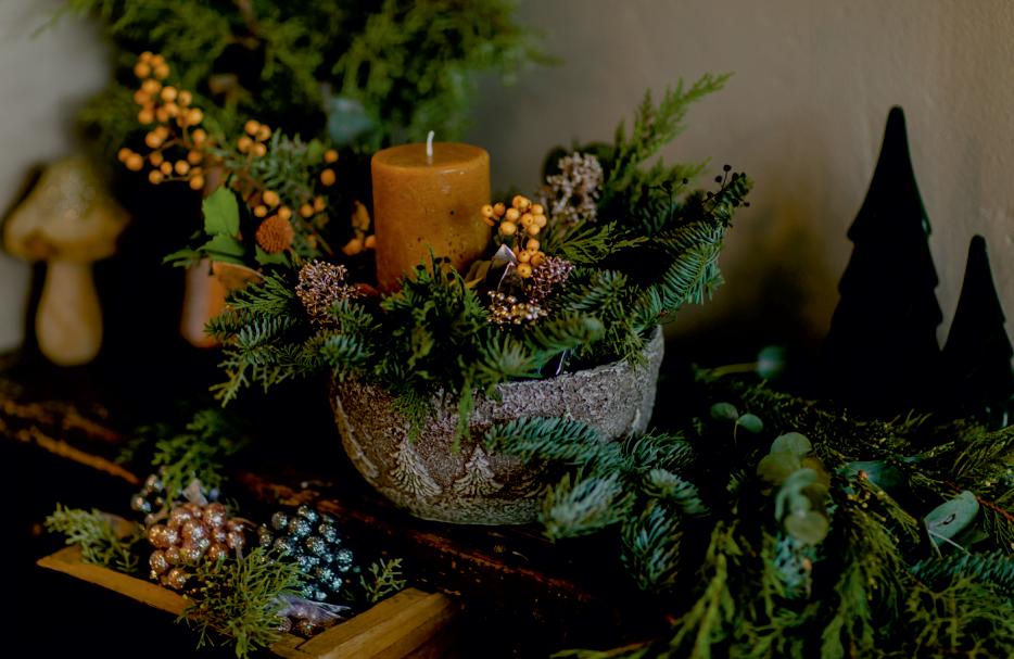 frunze, flori și fructe uscate; anasonul se numără printre preferatele de sezon, conferind, deopotrivă, un plus de aromă compozițiilor de poveste. Toate se contopesc în s l epic cu figurine drăgălașe din ceramică de calitate superioară, lumânări de felurite forme și culori, dantele suave, perluțe și luminițe ce aprind sufletul, fundițe texturate în fel și chip sau globulețe jucăușe din s clă.