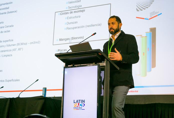 Las principales innovaciones que traemos a LatinPack Chile 2022, tiene que ver con impresión. Hemos comprado una máquina de última generación de nueve colores con barnices UV y estamos aplicando esta innova ción principalmente en todo lo que son cajas de cerezas que van para China, de muy alta calidad. Es una impresión en 130 líneas o más, por lo tanto, la resolución es bastante buena, absolutamente comparable con el offset y los clientes han estado muy felices con los resul tados, y es la única máquina de este estilo que existe desde Brasil hacia abajo, por el ancho, la cantidad de colores y por la calidad.