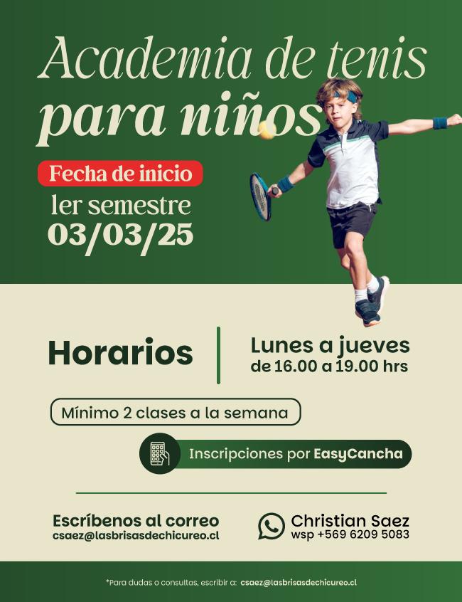 • Funcional de Tenis: Martes y jueves 08:30 a 09:20 hrs