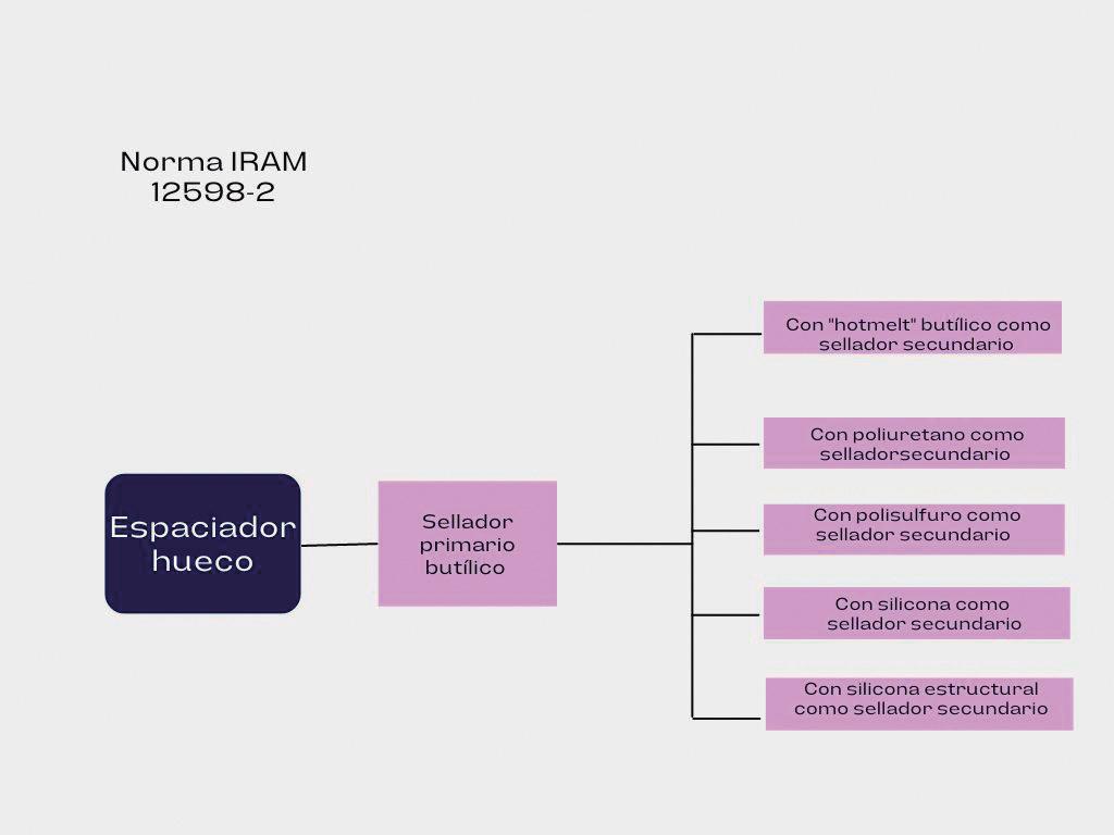 Los dos tipos de sistemas más utilizados son el espaciador hueco y el espaciador flexible que están descriptos en las Normas Iram 12598-2 y 12598-3 respectivamente.