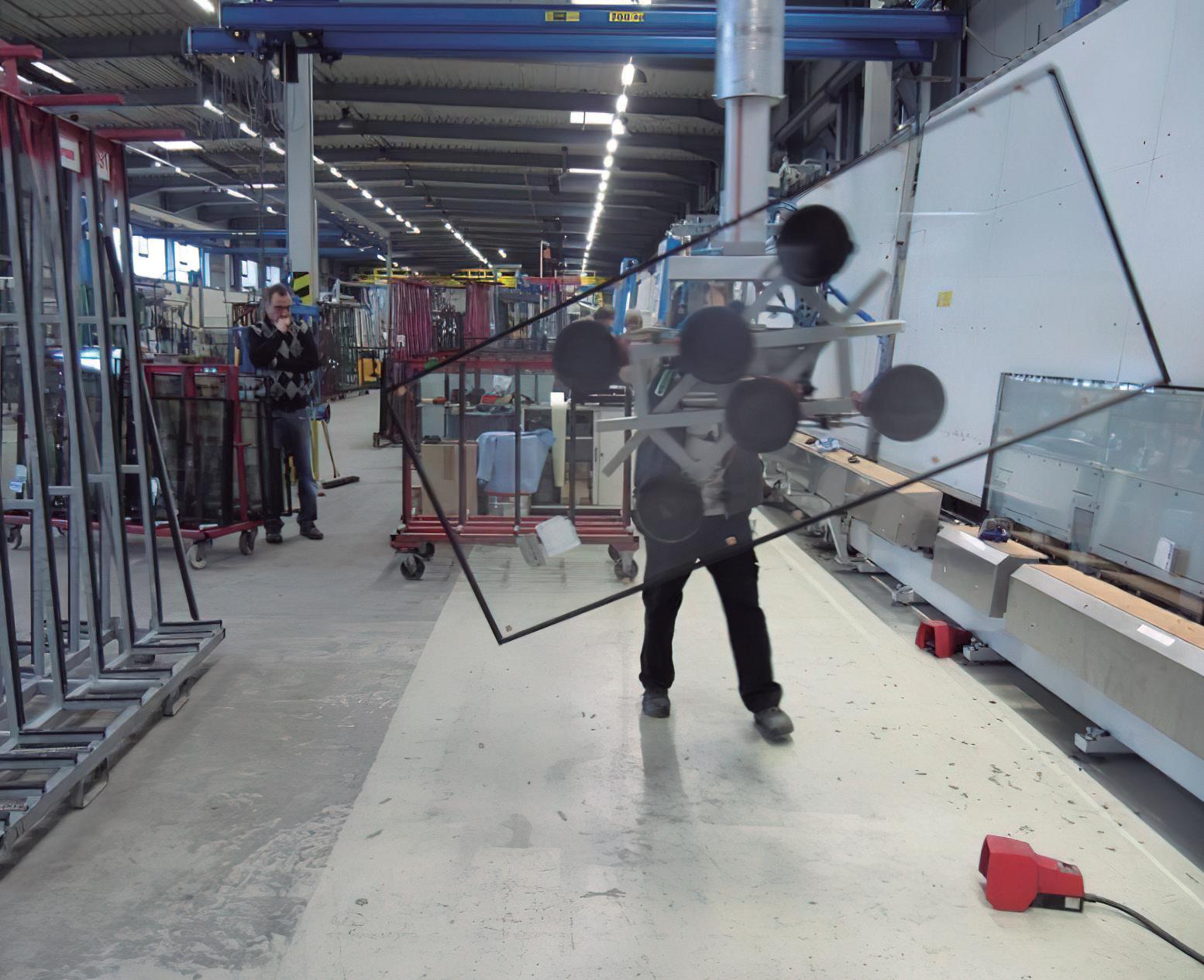 del desperdicio de material, la optimización de la gestión de almacén de los distintos componentes del vidrio aislante y una flexibilidad particular en cuanto a variedad de formas, riqueza de cavidades y tamaños del vidrio aislante.
