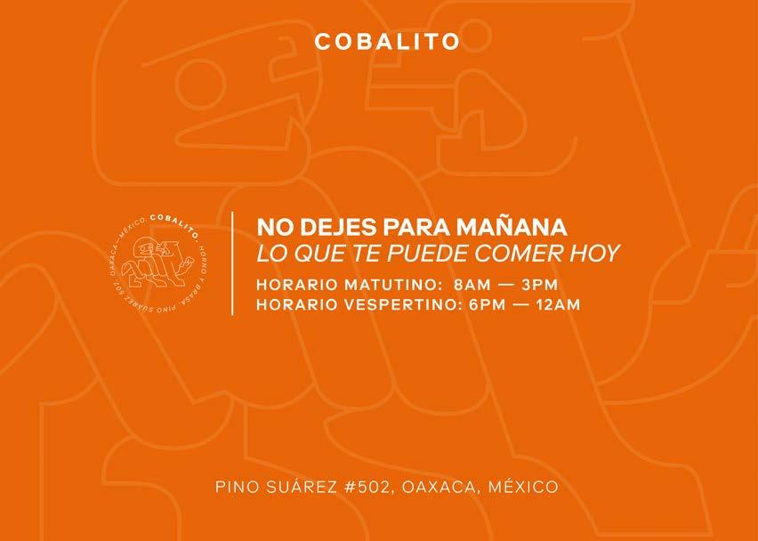Oaxaca es una publicación bimestral de circulación estatal . Año 9, número 76. Octubre 2022. Editor responsable: Ariadna Martínez. Número de Reserva ante el Instituto Nacional del Derecho de Autor, en trámite. Certificado de licitud de Títu lo y Contenido, en trámite. Domicilio de publicación Azucenas 1203-A, Col. Unión y Progreso, Oaxaca de Juárez, Oaxaca. C.P. 68050. Impresa en talleres de LITOGRAFÍA DE ANTEQUERA S.A. DE C.V., Rio Quiotepec 610 Col. Volcanes, Oaxaca, Oax. C.P. 68020. Queda prohibida la reproducción parcial o total del contenido, imágenes y fotografías sin previa autorización por es crito de los editores. COLABORADORES VIDA&ESTILO OAXACA
